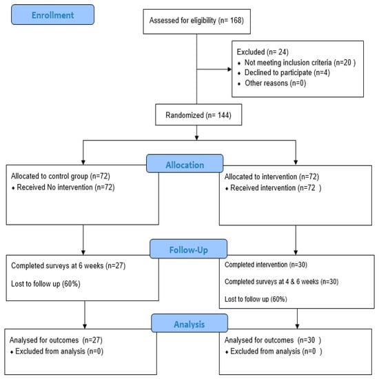 | Baseline Characteristic | Total (N = 57) | Control Group (N = 27) | Intervention Group (N = 30) | |||