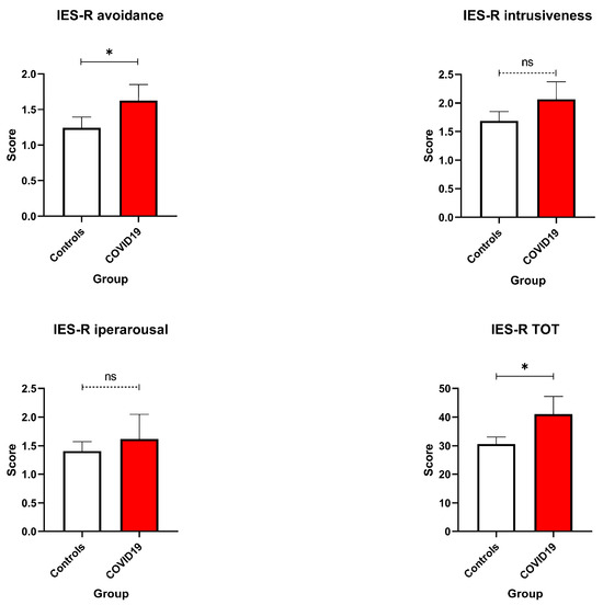| IES-R Total Score | 30.64 (7.99) | 31 | 41.1 (19.33) | 38 | 24.5 | 0.029 * |