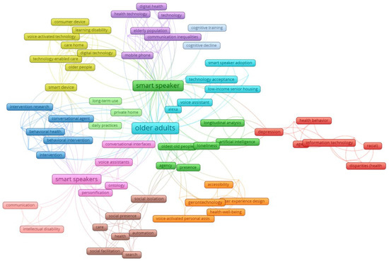 Smart speakers for older adults: article keywords clustered by theme.