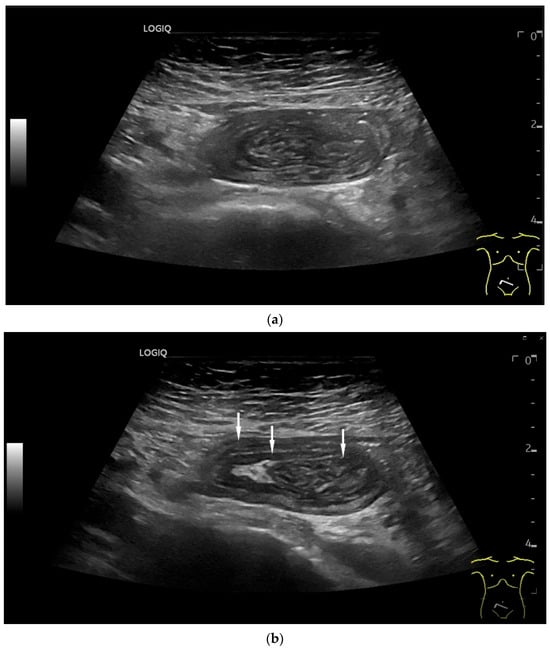 - Rispo, A.; De Sire, R.; D’Armiento, M.; De Bonis, L.; Tropeano, F.P.; Ricciolino, S.; Nardone, G.; Luglio, G. Ultrasonographic diagnosis of ileo-ileal intussusception secondary to Vanek’s tumor. Eur. Rev. Med. Pharmacol. Sci. 2022, 26, 350–353. [Google Scholar] [CrossRef]