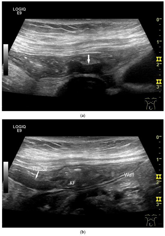 - Bozkurt, T.; Butsch, B.; Schmiegelow, P.; Lux, G. Sonographische Darstellung mesenchymaler Dünndarmtumoren in der Diagnostik von unklaren, gastrointestinalen Blutungen. Ultraschall Med. 1993, 14, 264–268. [Google Scholar] [CrossRef]