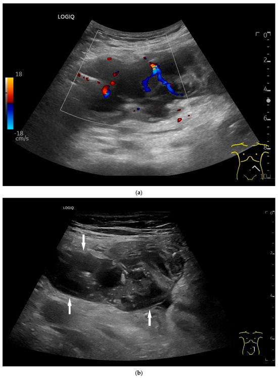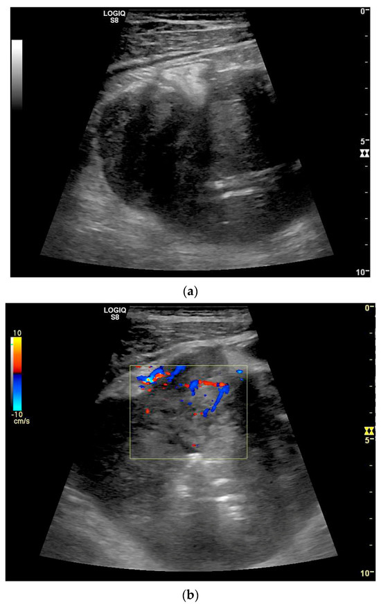 - Hasegawa, T.; Sumimura, J.; Mizutani, S.; Tazuke, Y.; Okuda, S.; Dezawa, T. The doughnut sign: An ultrasound finding in pediatric intestinal Burkitt’s lymphoma. Pediatr. Surg. Int. 1998, 13, 297–298. [Google Scholar] [CrossRef] [PubMed]