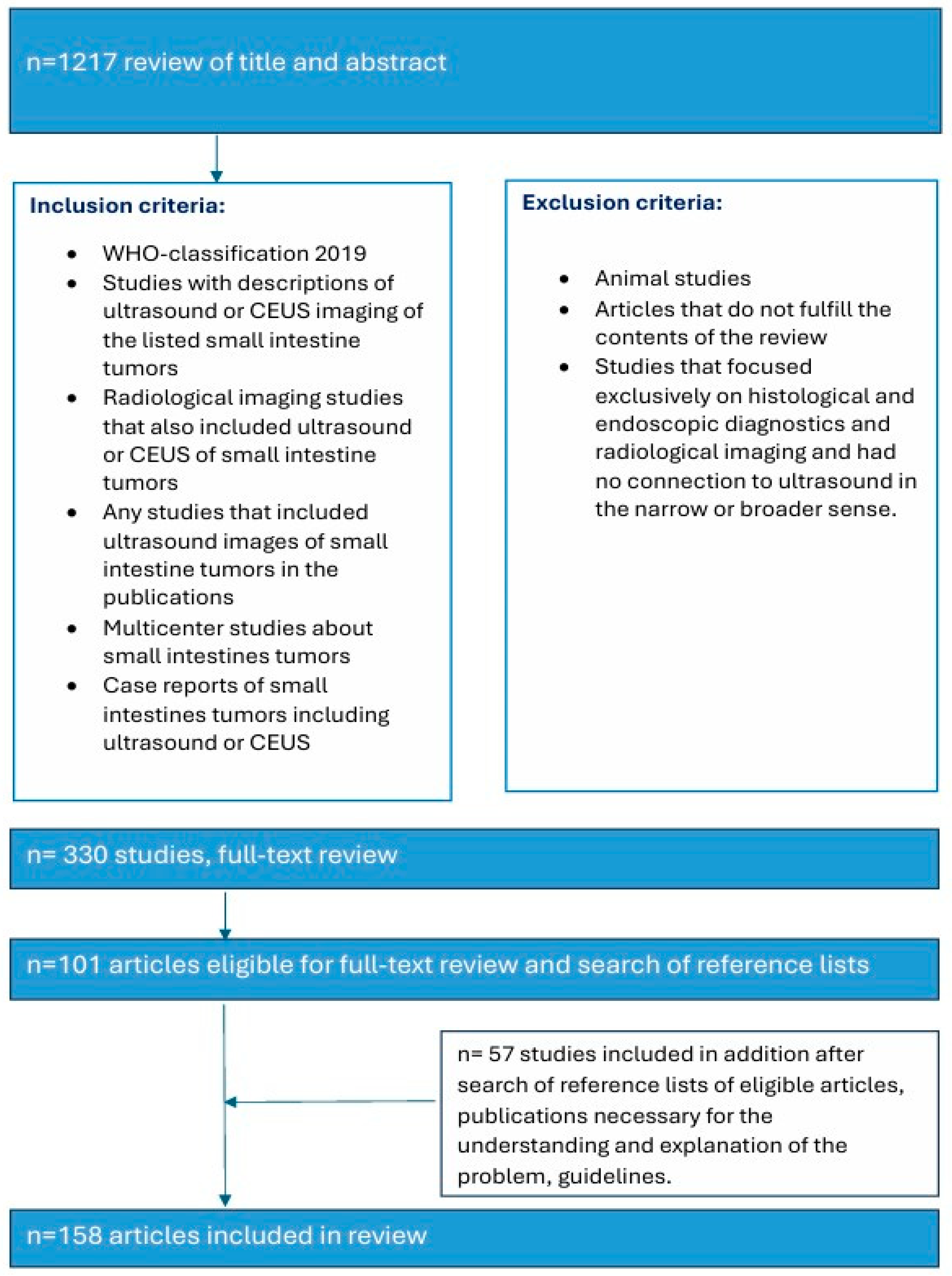 APA StyleMöller, K., Jenssen, C., Dirks, K., Hollerweger, A., Gottschall, H., Faiss, S., & Dietrich, C. F. (2025). Small Intestine Tumors: Diagnostic Role of Multiparametric Ultrasound. Healthcare, 13(21), 2776. https://doi.org/10.3390/healthcare13212776