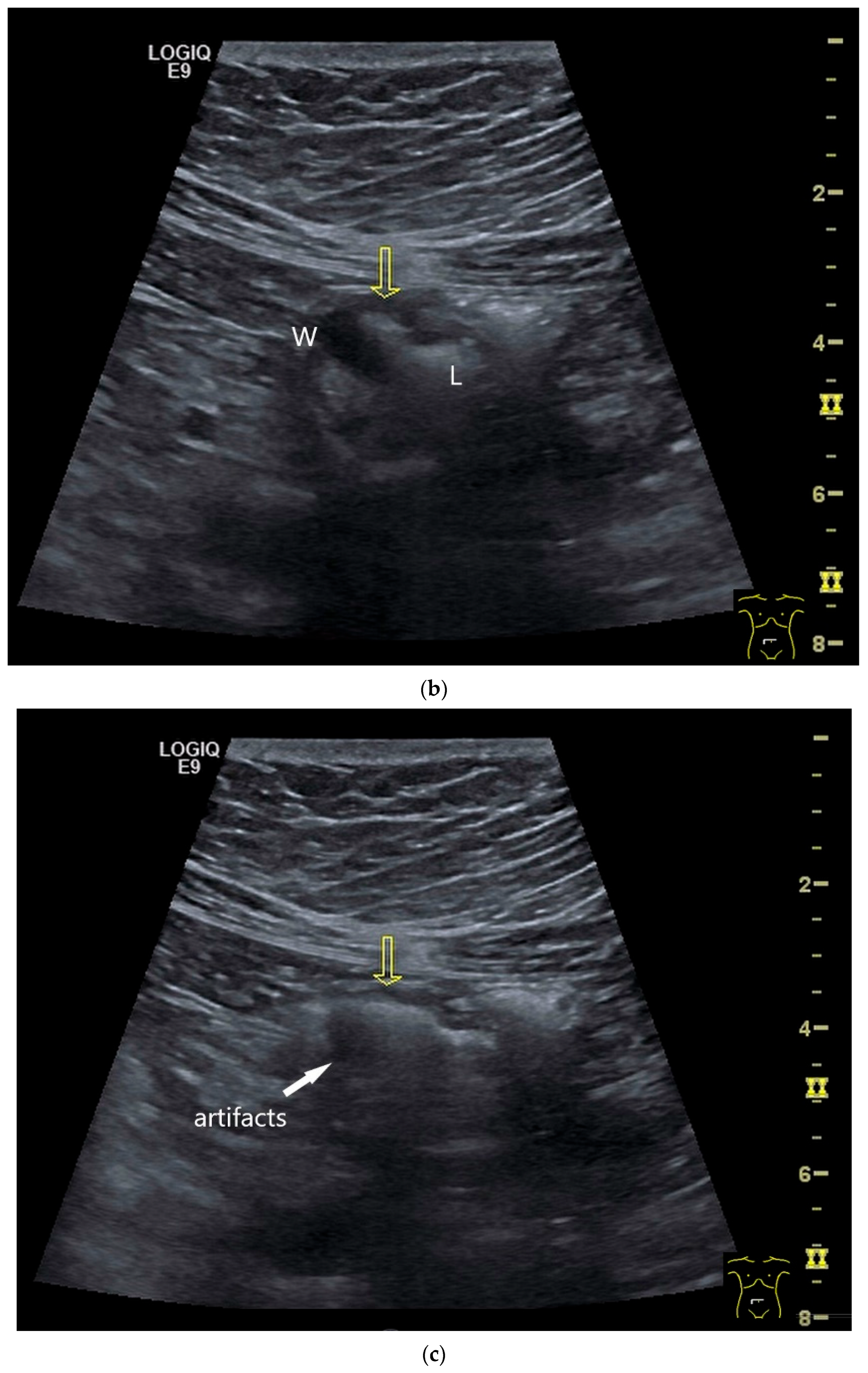 - Nylund, K.; Maconi, G.; Hollerweger, A.; Ripolles, T.; Pallotta, N.; Higginson, A.; Serra, C.; Dietrich, C.F.; Sporea, I.; Saftoiu, A.; et al. EFSUMB Recommendations and Guidelines for Gastrointestinal Ultrasound. Ultraschall Med. 2017, 38, 273–284. [Google Scholar] [CrossRef] [PubMed]