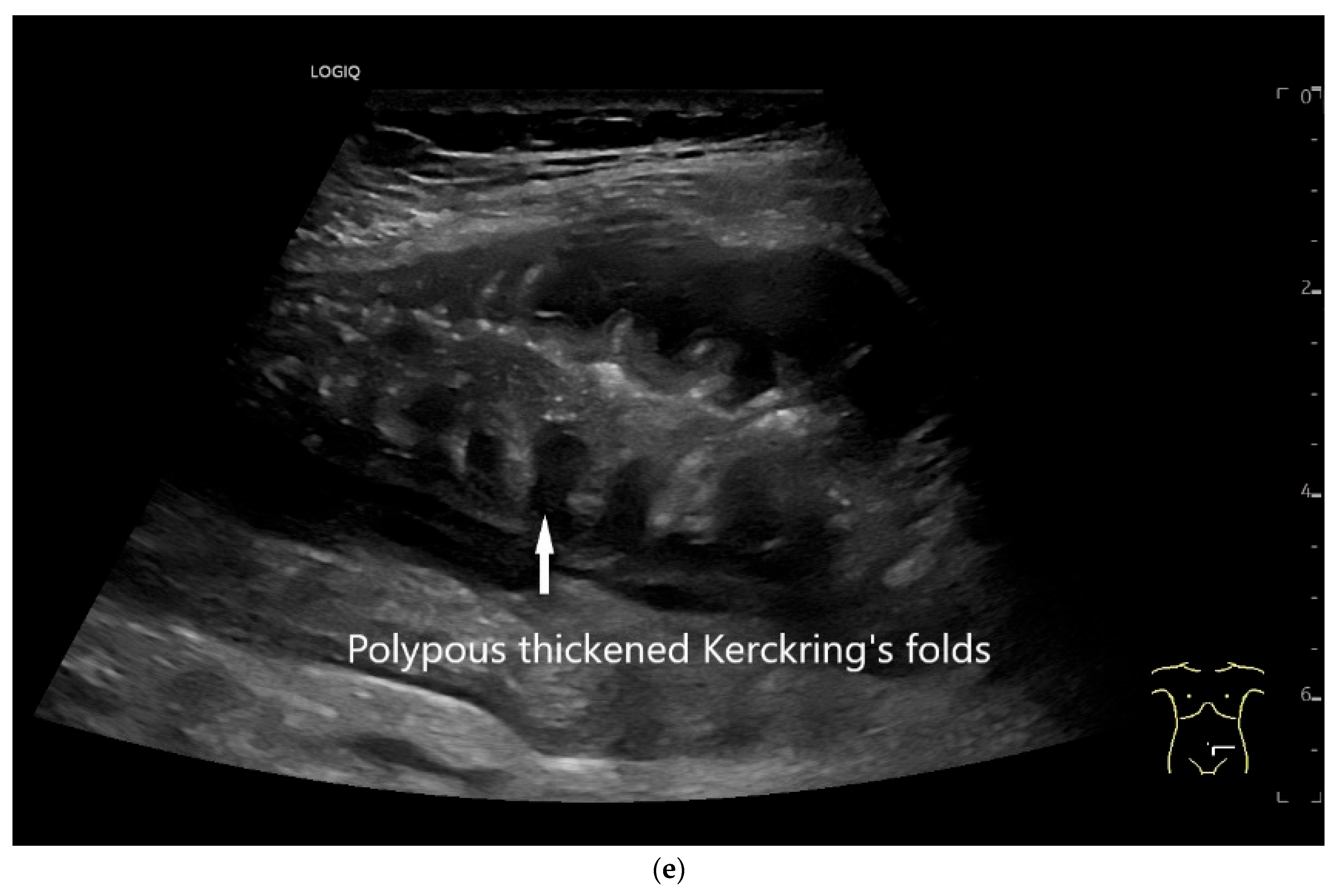- Dietrich, C.F.; Hollerweger, A.; Dirks, K.; Higginson, A.; Serra, C.; Calabrese, E.; Dong, Y.; Hausken, T.; Maconi, G.; Mihmanli, I.; et al. EFSUMB Gastrointestinal Ultrasound (GIUS) Task Force Group: Celiac sprue and other rare gastrointestinal diseases ultrasound features. Med. Ultrason. 2019, 21, 299–315. [Google Scholar] [CrossRef]