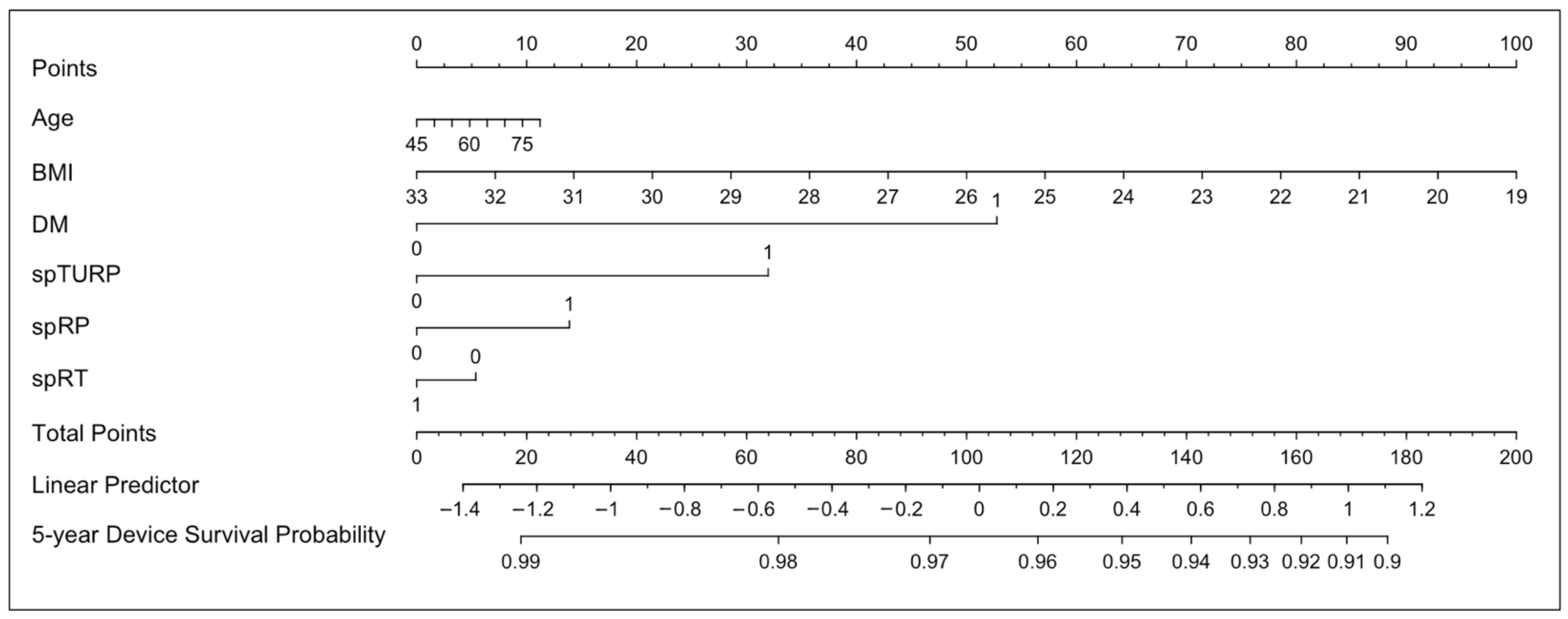 APA StyleLin, C.-F., Chen, H.-Y., Wu, C.-T., Liu, K.-L., Lin, C.-C., Hsu, H.-J., Lee, C.-C., & Chen, C.-Y. (2025). Long-Term Outcomes and Predictors of Artificial Urinary Sphincter Survival After Prostate Cancer Treatment: A Multicenter Cohort Study. Healthcare, 13(21), 2812. https://doi.org/10.3390/healthcare13212812
