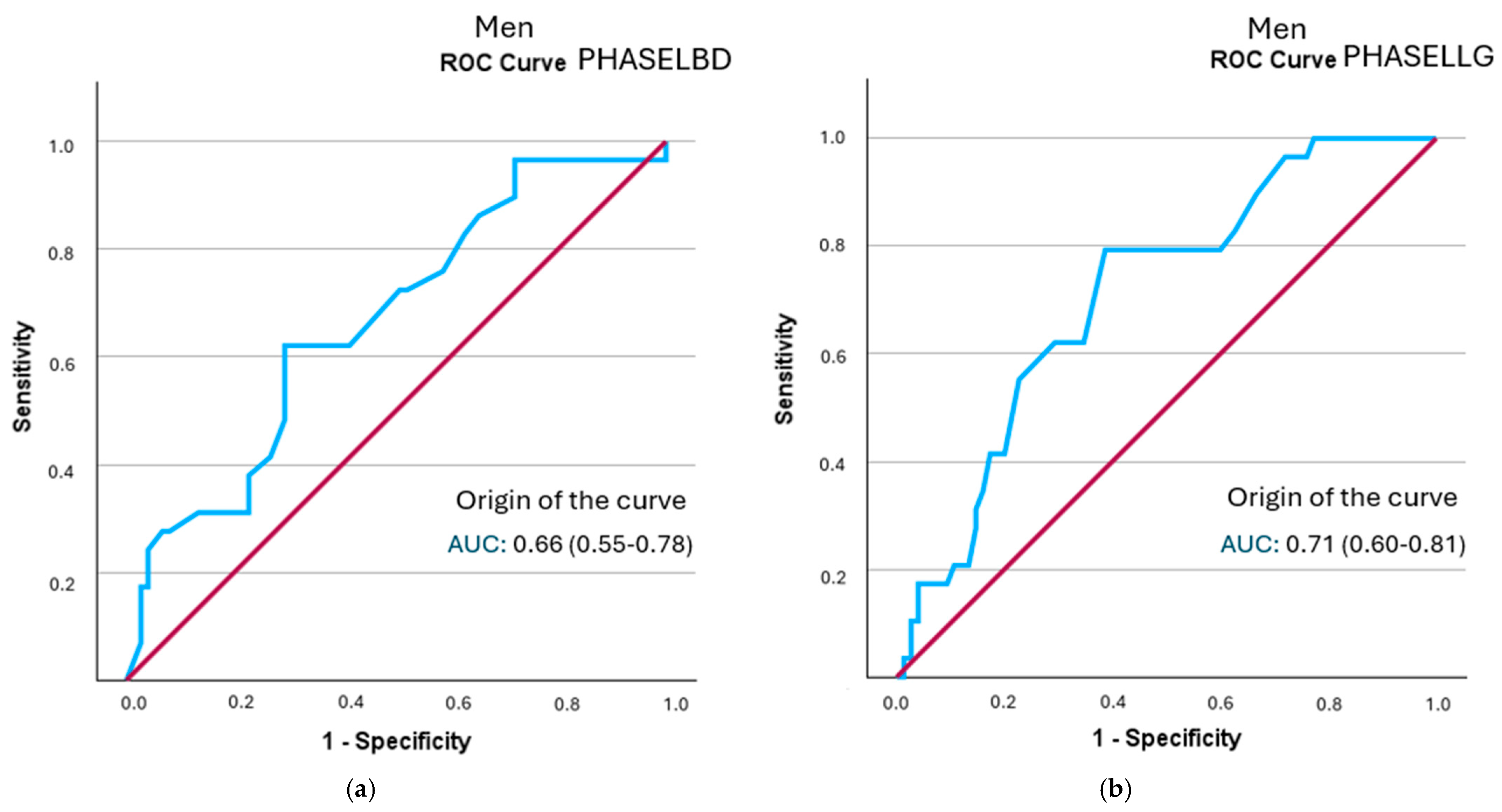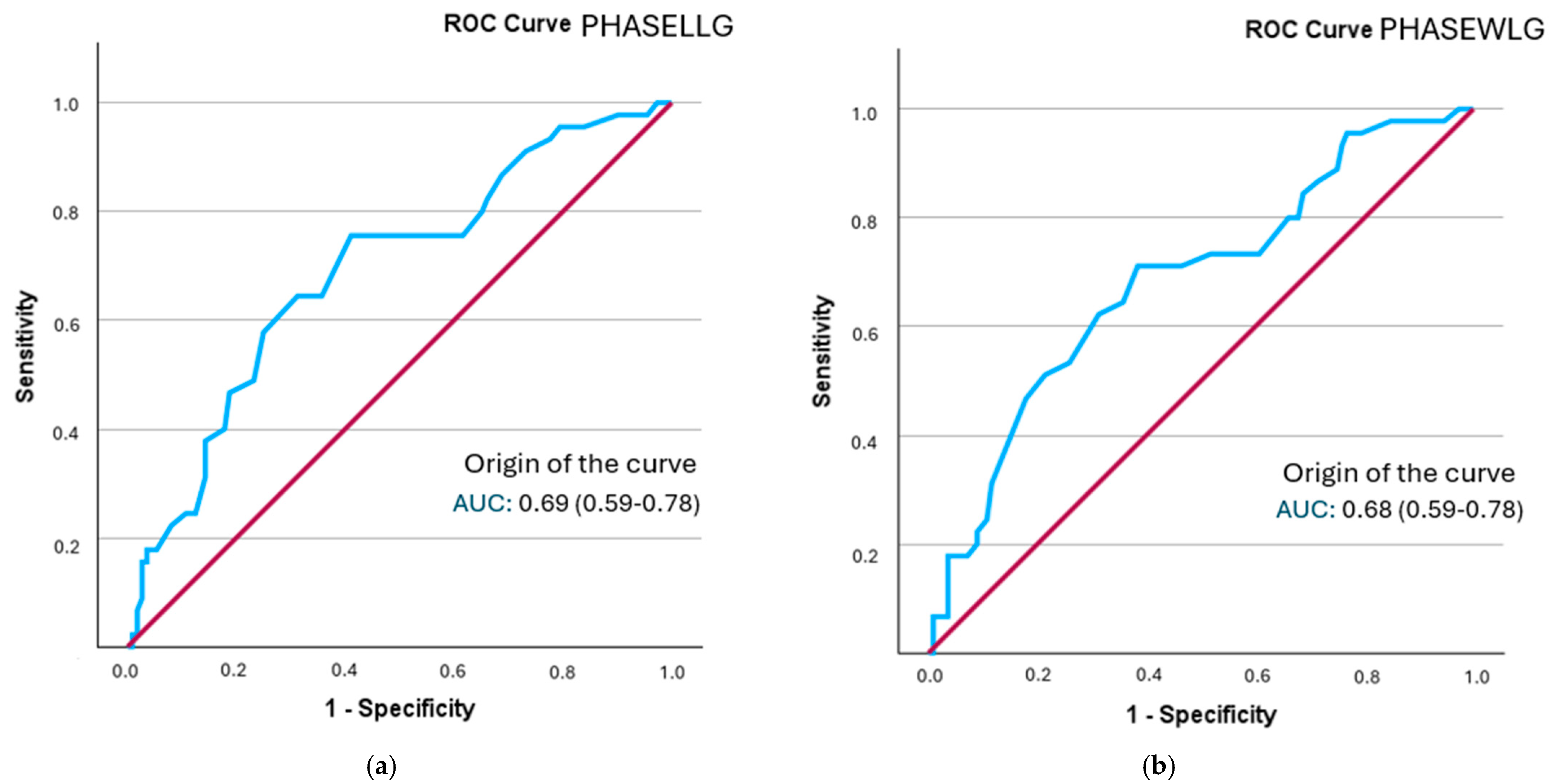 3.5. Analysis of ROC Curves and Cut-Off Points for Segmental Phase Angles