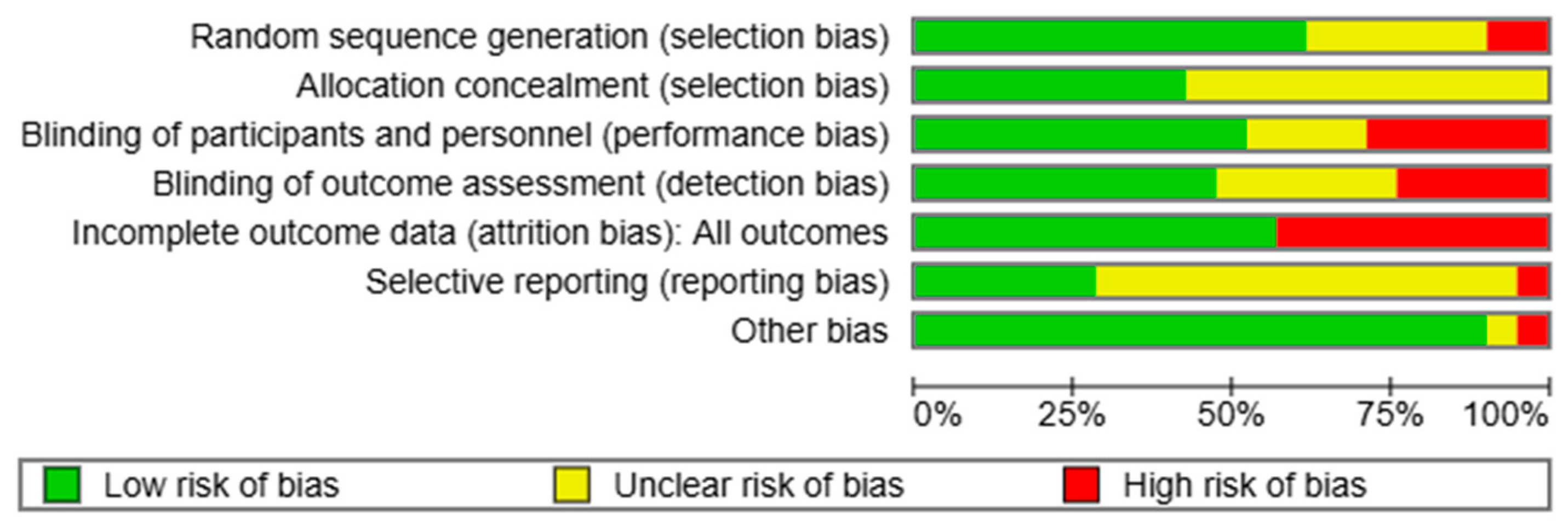 - Higgins, J.P.; Altman, D.G.; Gøtzsche, P.C.; Jüni, P.; Moher, D.; Oxman, A.D.; Savovic, J.; Schulz, K.F.; Weeks, L.; Sterne, J.A.; et al. The Cochrane Collaboration’s tool for assessing risk of bias in randomised trials. BMJ (Clin. Res. Ed.) 2011, 343, d5928. [Google Scholar] [CrossRef]