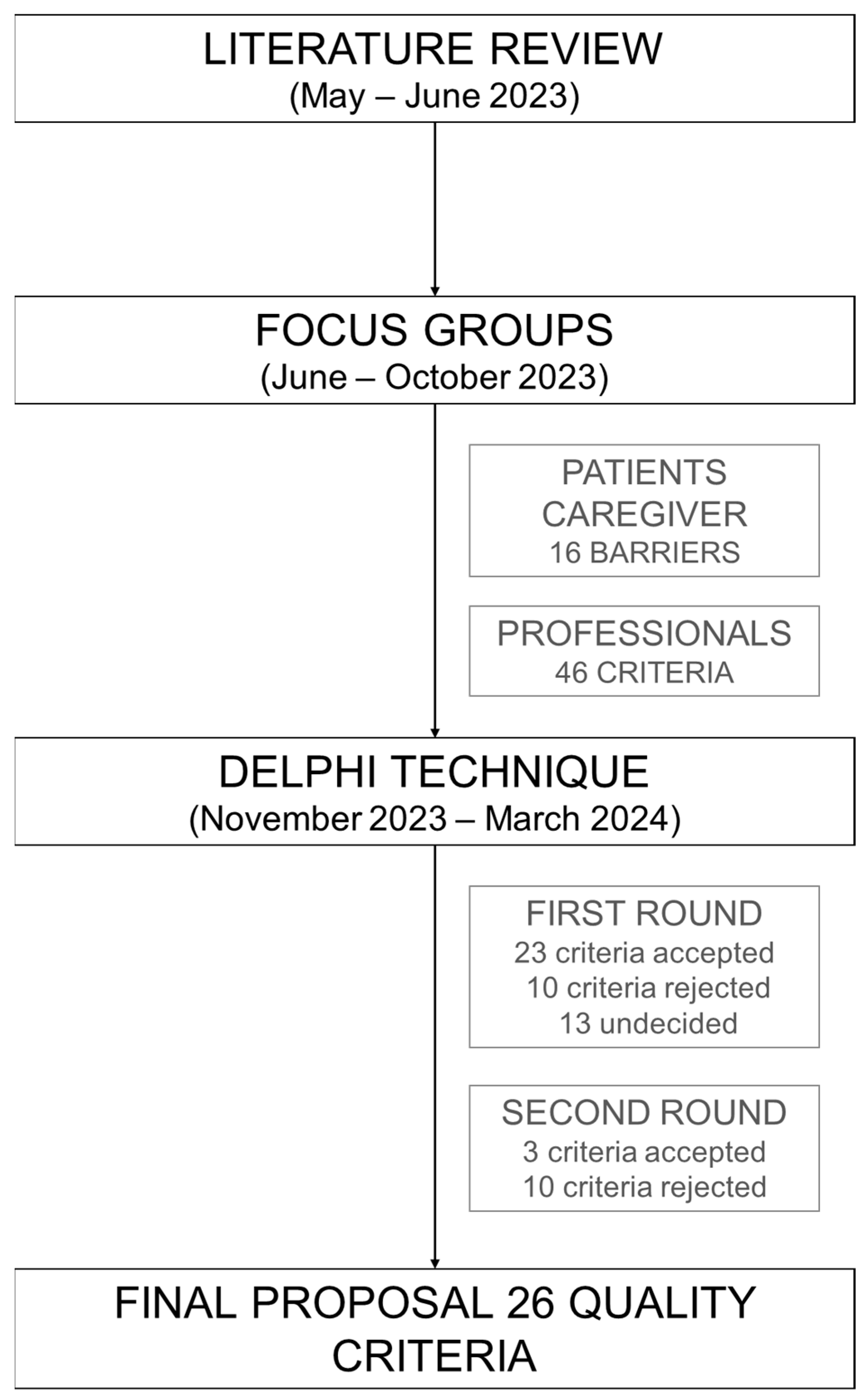 Roncero, C.; Sánchez-García, A.; Conesa Burguet, L.; Fernández Moreno, A.; Barbero, M.L.M.; Aguilera-Serrano, C.; Olmo Dorado, V.; Guajardo Remacha, J.; Rico Prieto, J.; Pérez-Esteve, C.; et al. Relevant Criteria for Improving Quality of Schizophrenia Spectrum Disorders Treatment: A Delphi Study. Healthcare 2025, 13, 2847. https://doi.org/10.3390/healthcare13222847
