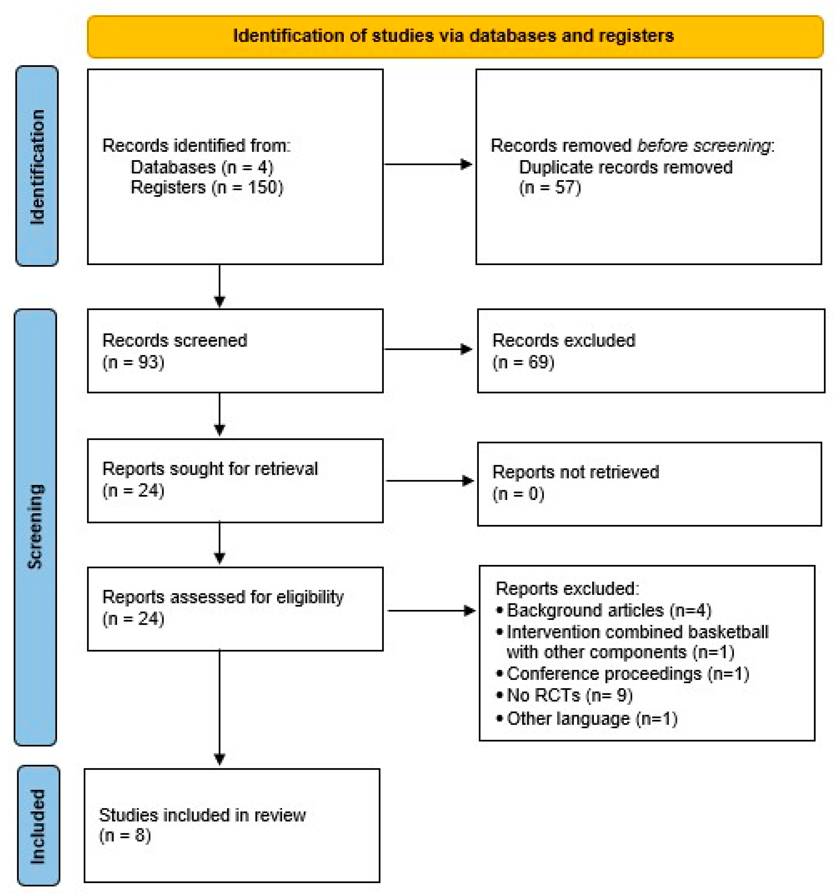 | MEDLINE/ PubMed | (“basketball” OR “mini-basketball”) AND (“autis*” OR “autism spectrum disorder” OR “ASD” OR “autist*”) | 25 |