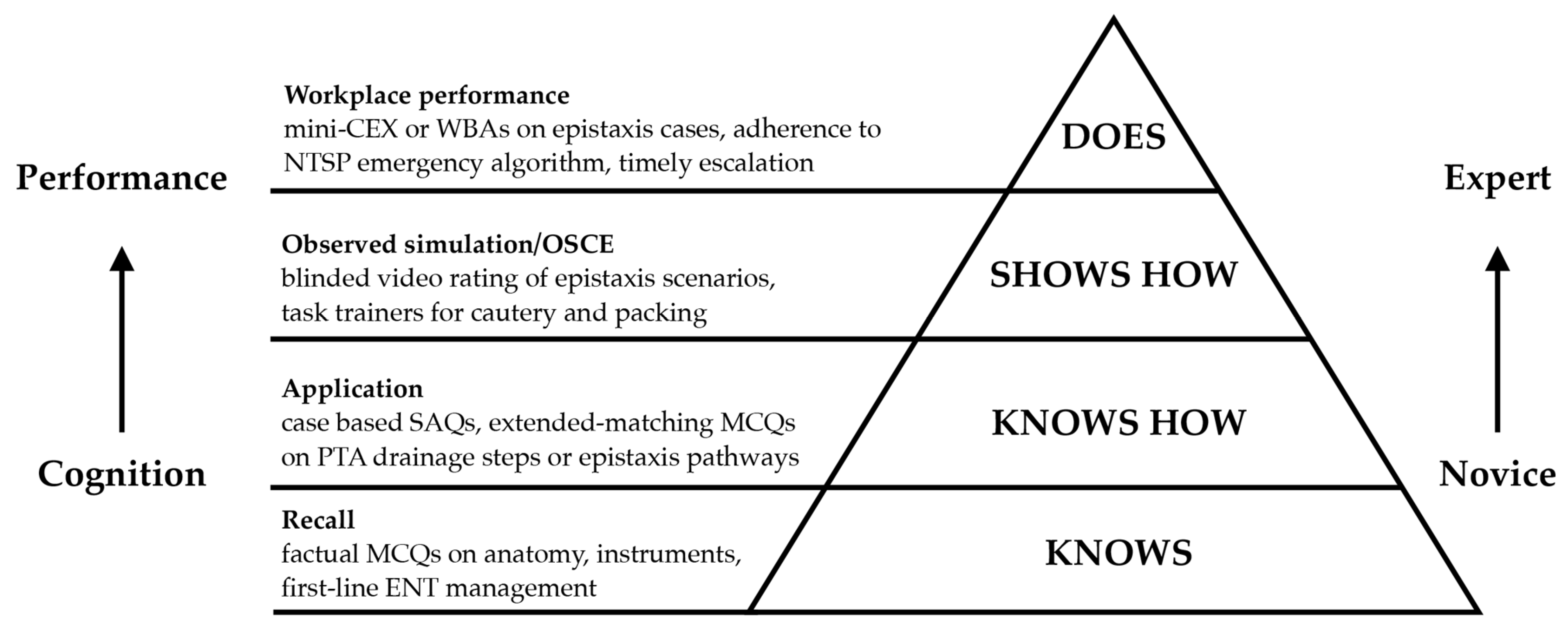 - Miller, G.E. The assessment of clinical skills/competence/performance. Acad. Med. 1990, 65, S63–S67. [Google Scholar] [CrossRef]