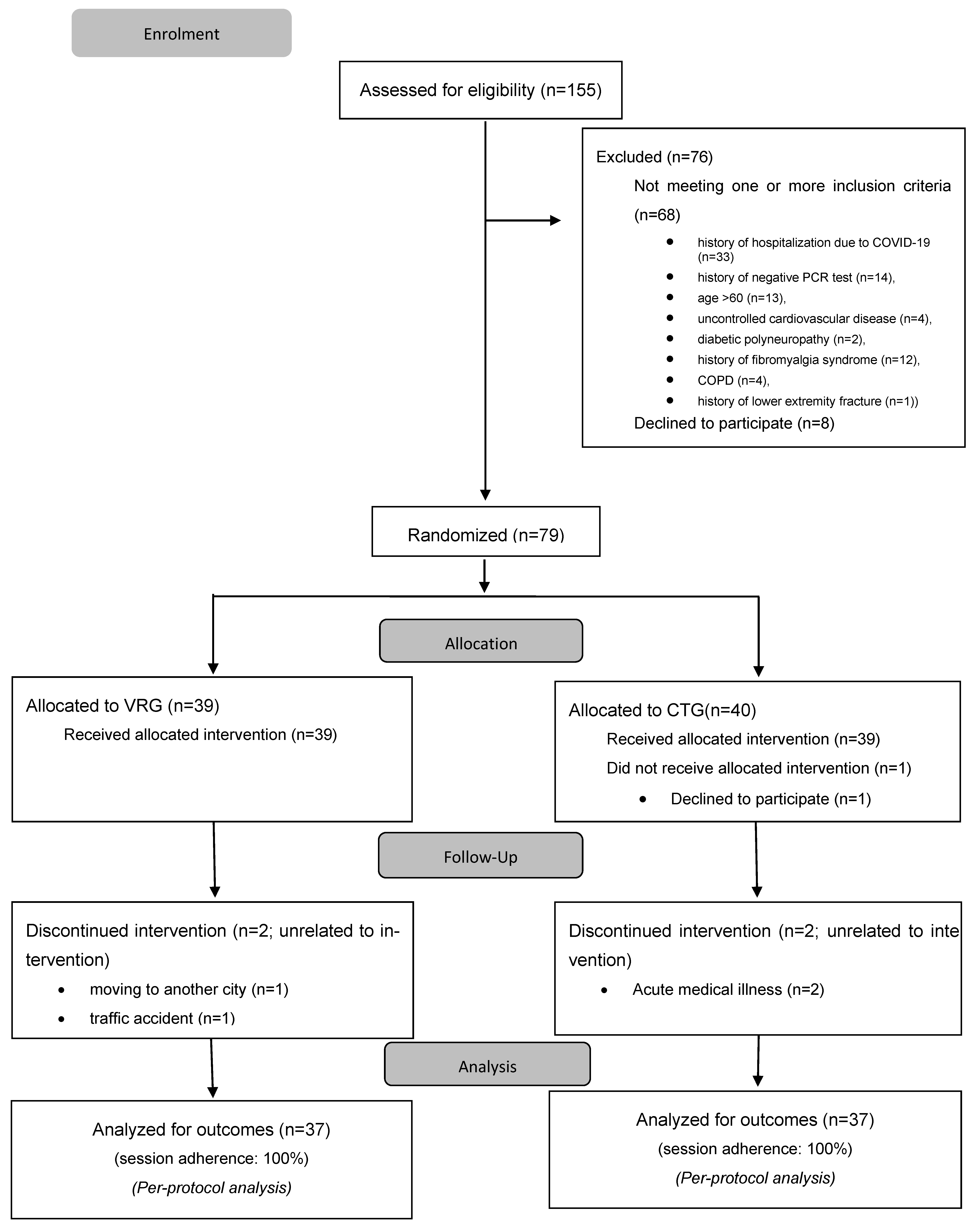 Chicago/Turabian StylePolat, Musa, Pınar Oba, and Ahmet Karadağ. 2025. "Effect of Motion-Controlled Video Games-Based Virtual Reality Exercise on Patients with Post-COVID-19 Condition: A Randomized Controlled Trial" Healthcare 13, no. 22: 2914. https://doi.org/10.3390/healthcare13222914