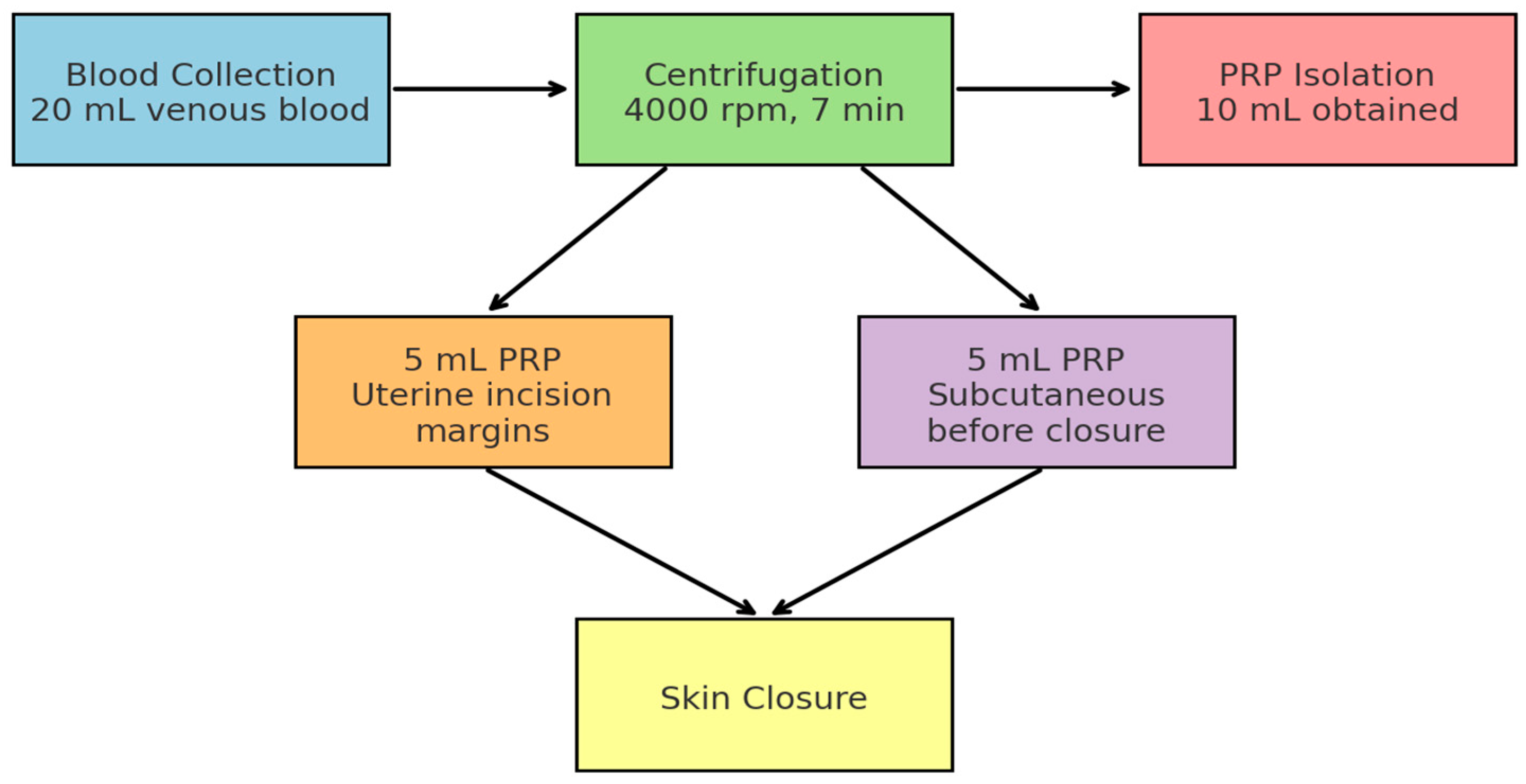 The control arm received standard cesarean closure without PRP. All other intraoperative and postoperative procedures followed identical protocols.