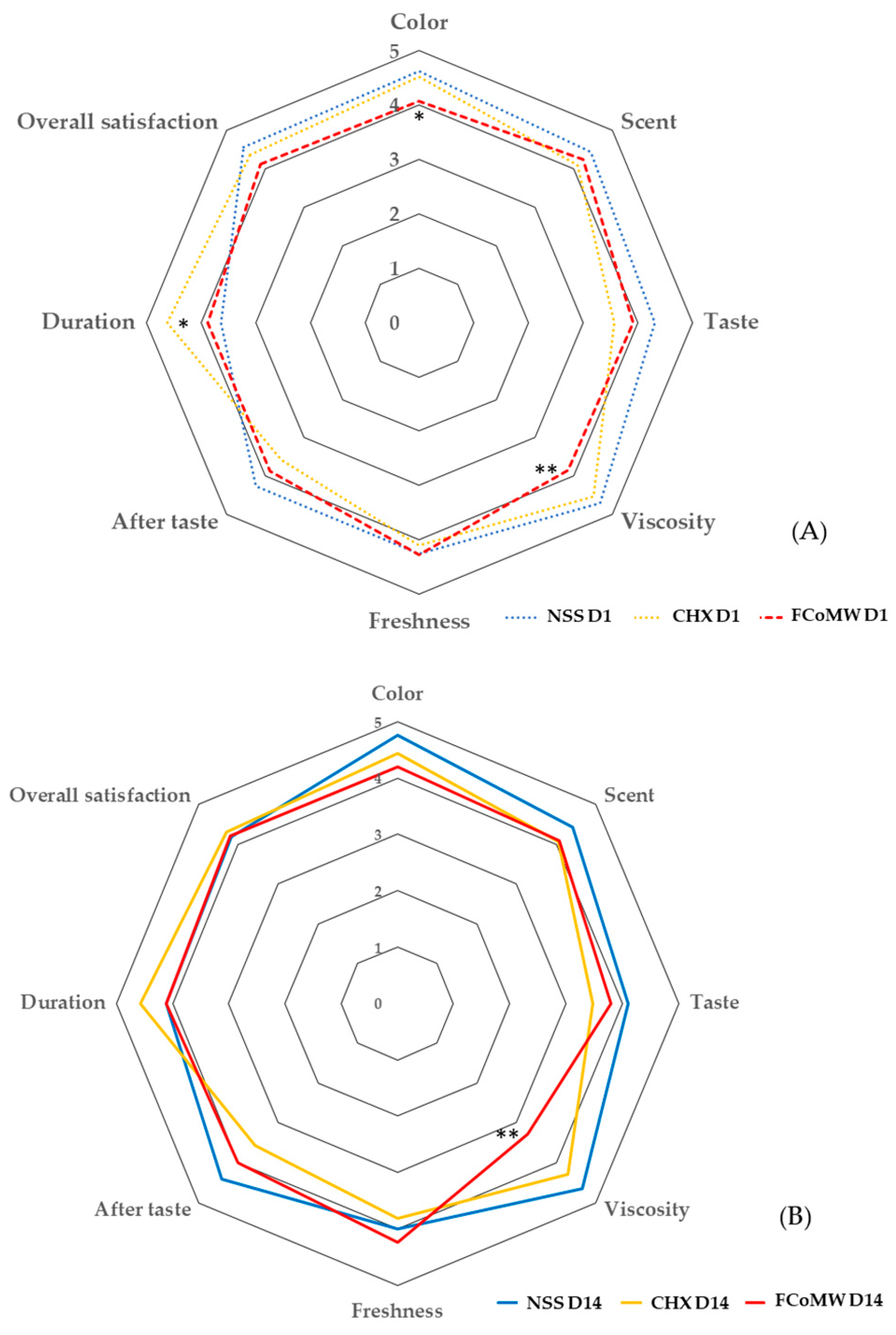APA StyleSoodsakorn, A., Chaiyana, W., Ittichaicharoen, J., Wanachantararak, P., Wongtapin, M., Sookkhee, S., & Owittayakul, D. (2025). A Randomized Trial in Older Adults of a Flavor-Enhanced Coconut Oil-Based Mouthwash: Clinical Safety, Antimicrobial Efficacy, and User Satisfaction. Healthcare, 13(22), 2941. https://doi.org/10.3390/healthcare13222941