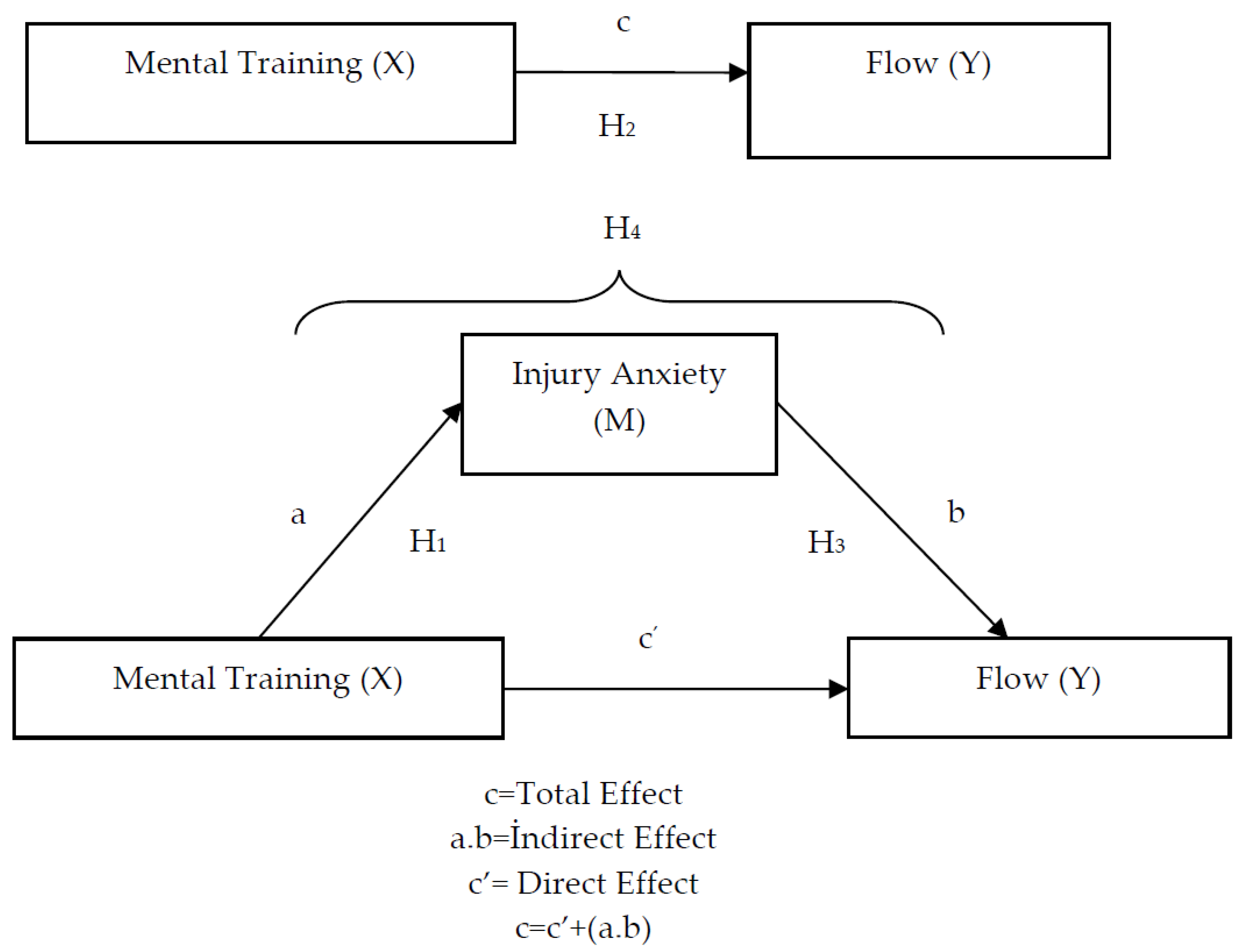 - The effect of the independent variable (mental training) on the dependent variable (flow state), denoted as Path c’ (the direct effect).
