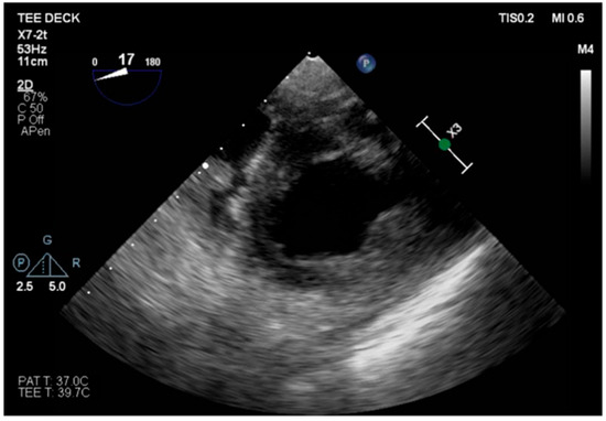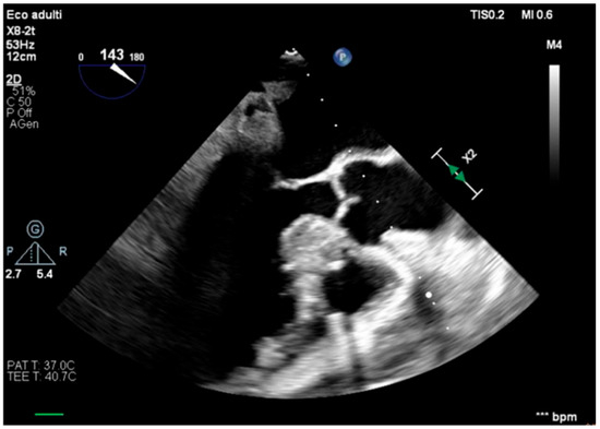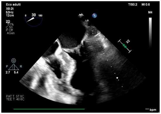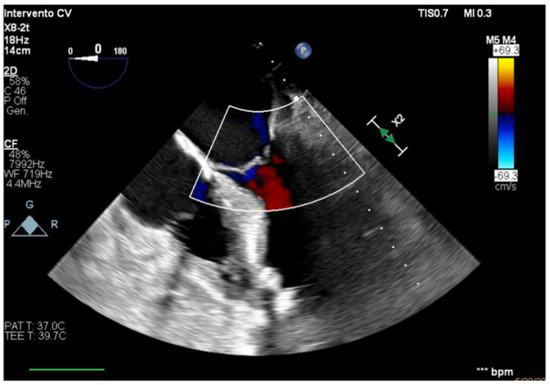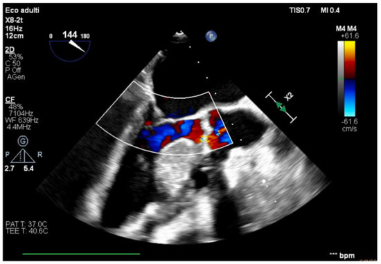 Data deriving from the Swan–Ganz catheter have proven important in guiding the process of weaning a patient from extracorporeal support. Nevertheless, the TEE played a pivotal role in the process, aiding significantly in decision-making and clinical management. We performed a reduction in the ECMO blood flow using a real-time echocardiographic cardiac function assessment. We reported data detected in T0 and T1, cardiac function assessments are often repeated more than once a day. We employed transesophageal echocardiography due to our team’s familiarity with this tool and because it provides more precise measurements given the better acoustic window, with high reproducibility compared to transthoracic echocardiography. We did not encounter any complications related to TEE employment. We used transesophageal echocardiography to monitor real-time left ventricle distention and function as it can easily detect LV distention or failure of the aortic valve opening. TEE also provides information about intravascular volume status and preload, identifying patients who might require LV unloading strategies [11]. The method of using ultrasound to calculate the Qp/Qs ratio is a useful tool; it confirmed the shunt fraction calculated with the thermodilution and Fick’s law. We consider this value to be an acceptable shunt fraction, with no impact on the weaning. The residual defect allowed for the weaning of the patient from extracorporeal support.