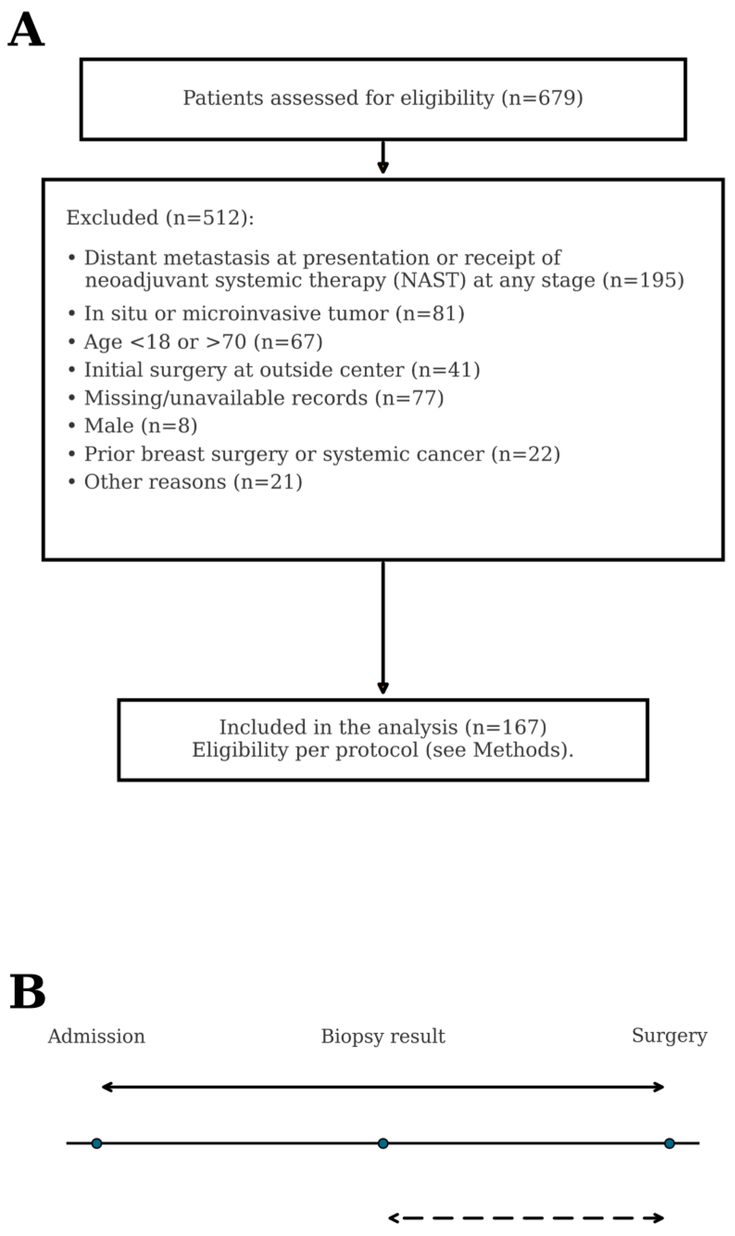 - Wiener, A.A.; Hanlon, B.M.; Schumacher, J.R.; Vande Walle, K.A.; Wilke, L.G.; Neuman, H.B. Reexamining time from breast cancer diagnosis to primary breast surgery. JAMA Surg. 2023, 158, 485–492. [Google Scholar] [CrossRef]