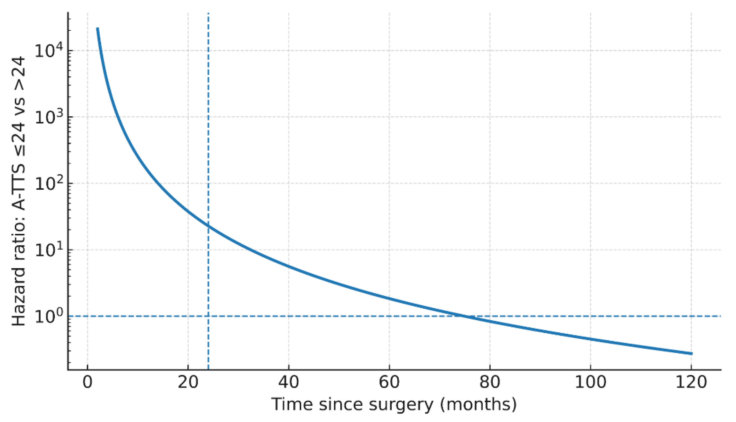 | A-TTS ≤ 24 days (HR at 24 months) | 22.83 (6.44–80.98) | |