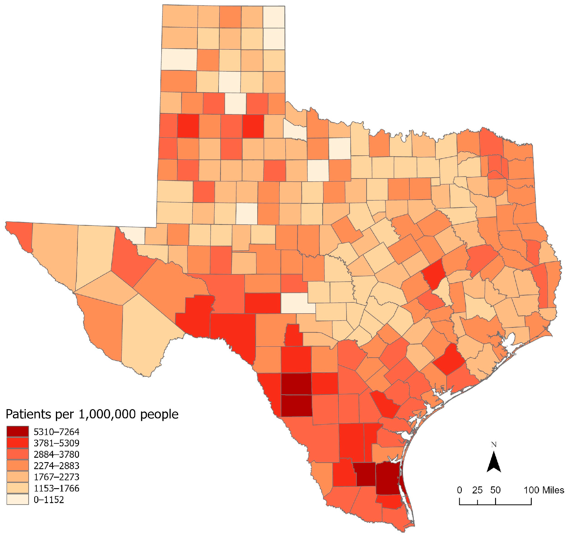 The study area is the state of Texas, a geographically expansive and demographically diverse region that offers an ideal geographic context for examining spatial and hierarchical disparities in health outcomes among patients with ESRD (
