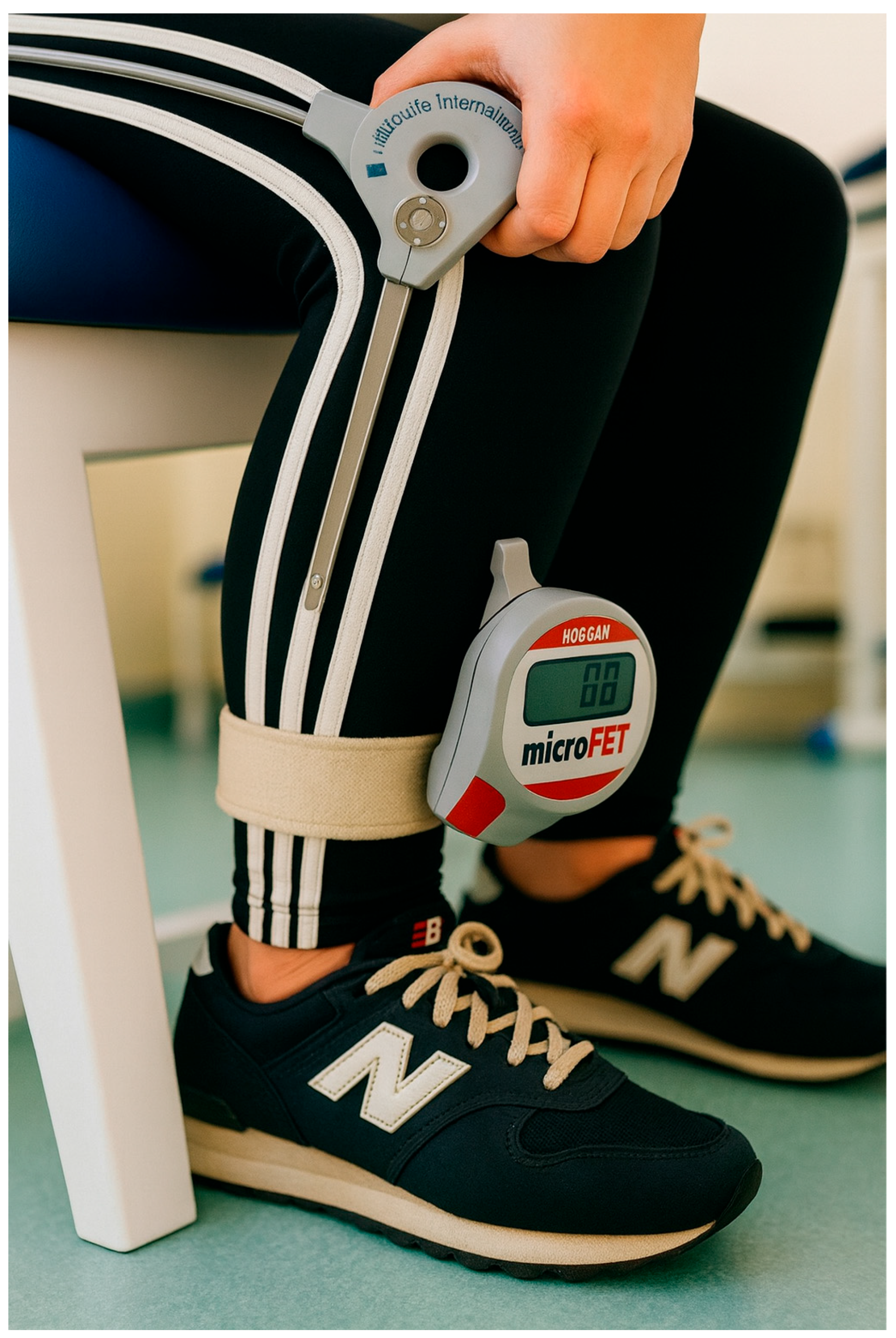 - Isometric quadriceps strength test (digital hand-held dynamometer):