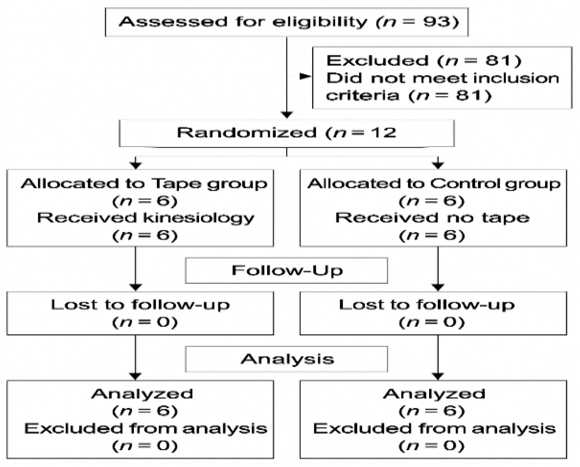 - Previous kinesiology taping: They had not previously applied any type of kinesiology tape on the thighs for the last six months before this study commenced. A six-month duration of cables was used in this study to not allow for any potential carry-over or adaptation effects occurring on their earlier (pre) performance [17].
