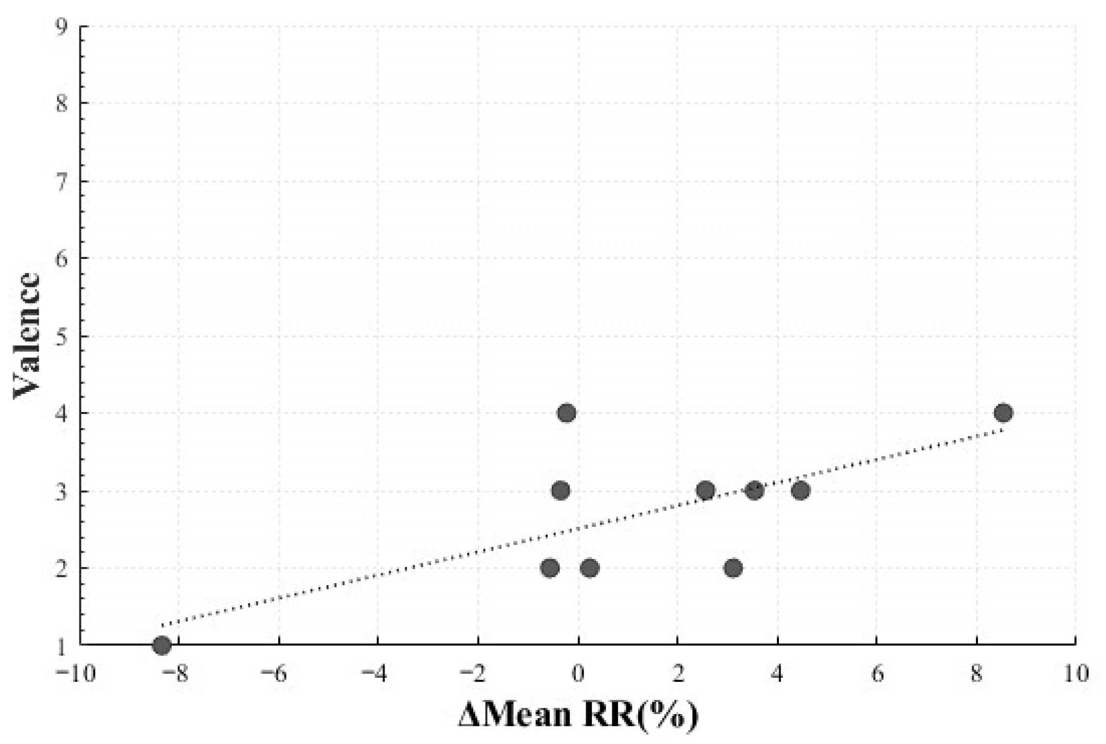 Correlation-Based Trend Line Between Relative Change in Mean RR of Negative Sadness and Valence.