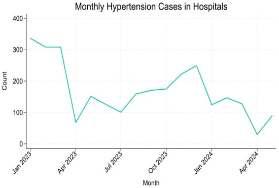 Monthly Trends in Hypertension-Preventable Hospitalizations in Makkah (January 2023–May 2024).