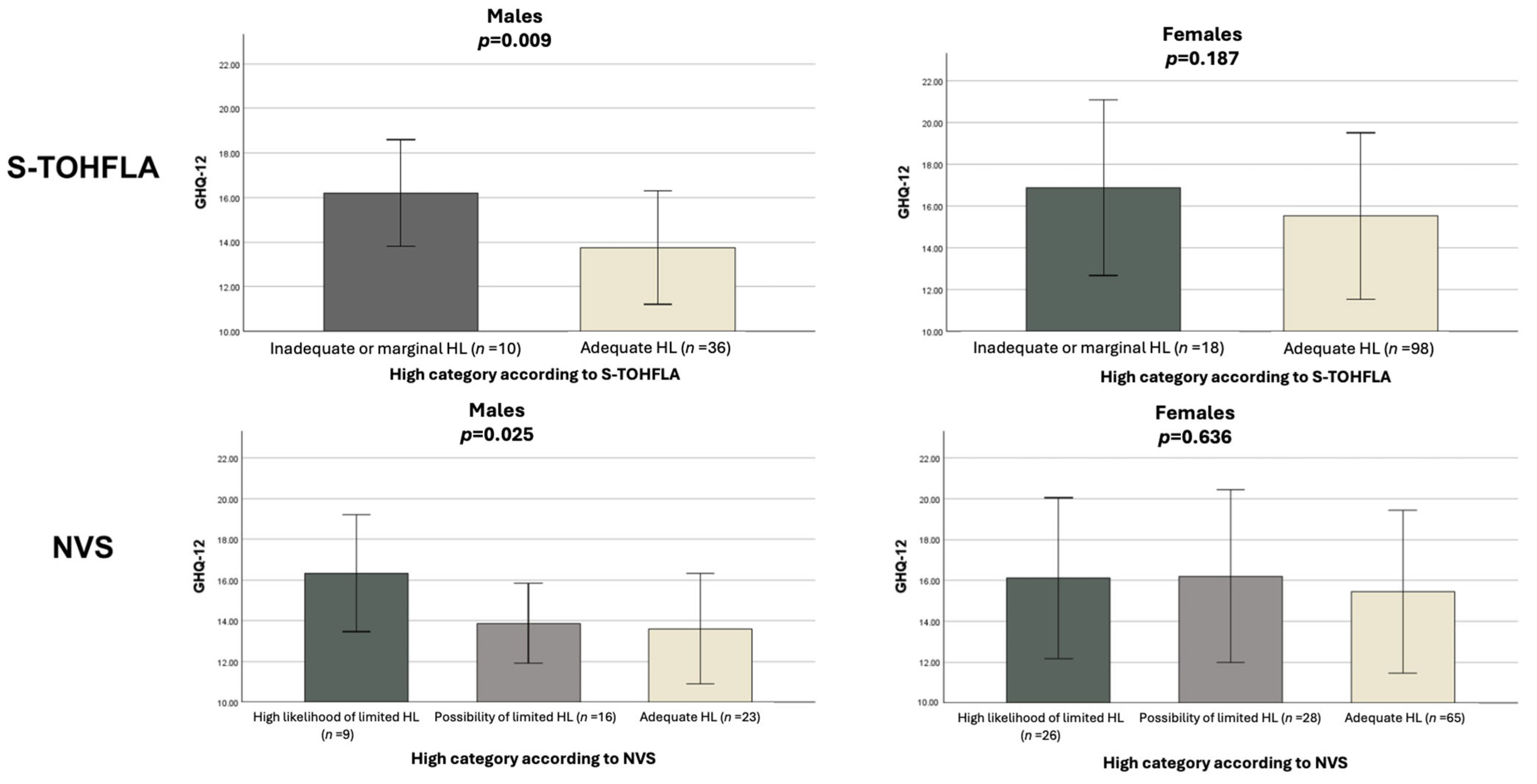 APA StyleLorini, C., Bruno, R. M., Mossello, E., Longobucco, Y., Buscemi, P., Schirripa, A., Giammarco, B., Albora, G., Giorgetti, D., Biamonte, M. A., Fattorini, L., Giusti, G., Rigon, L., Rivasi, G., Ungar, A., & Bonaccorsi, G. (2025). Gender Differences in the Relationship Between Health Literacy and Stress Among Caregivers of Older Adults with Dementia. Healthcare, 13(23), 3064. https://doi.org/10.3390/healthcare13233064