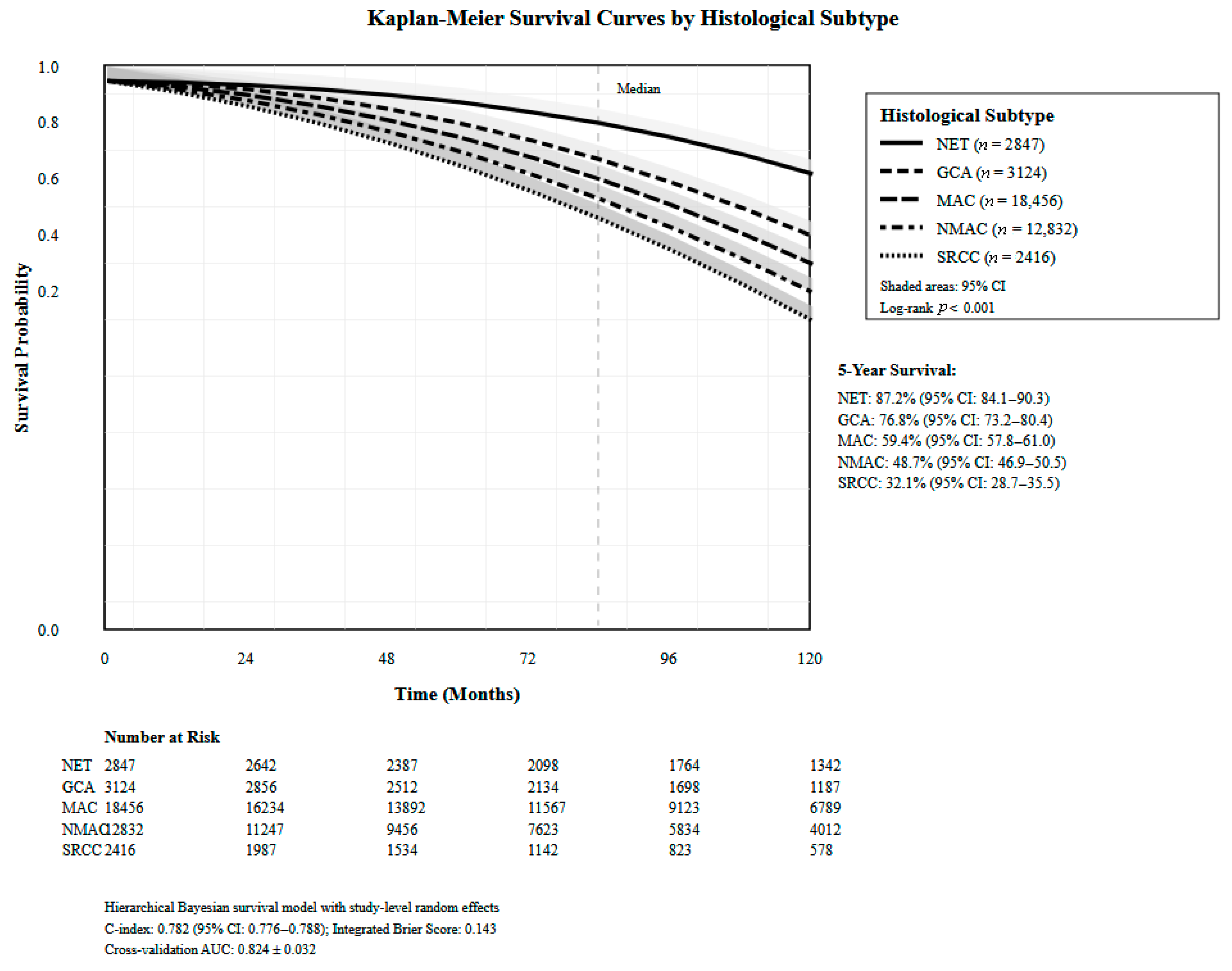 | MAC Subtype | 3237 | Mucinous Adenocarcinoma | 0.831 (0.776–0.891) | 56.2 | 35.6 | 20.6 | Pure mucinous type |