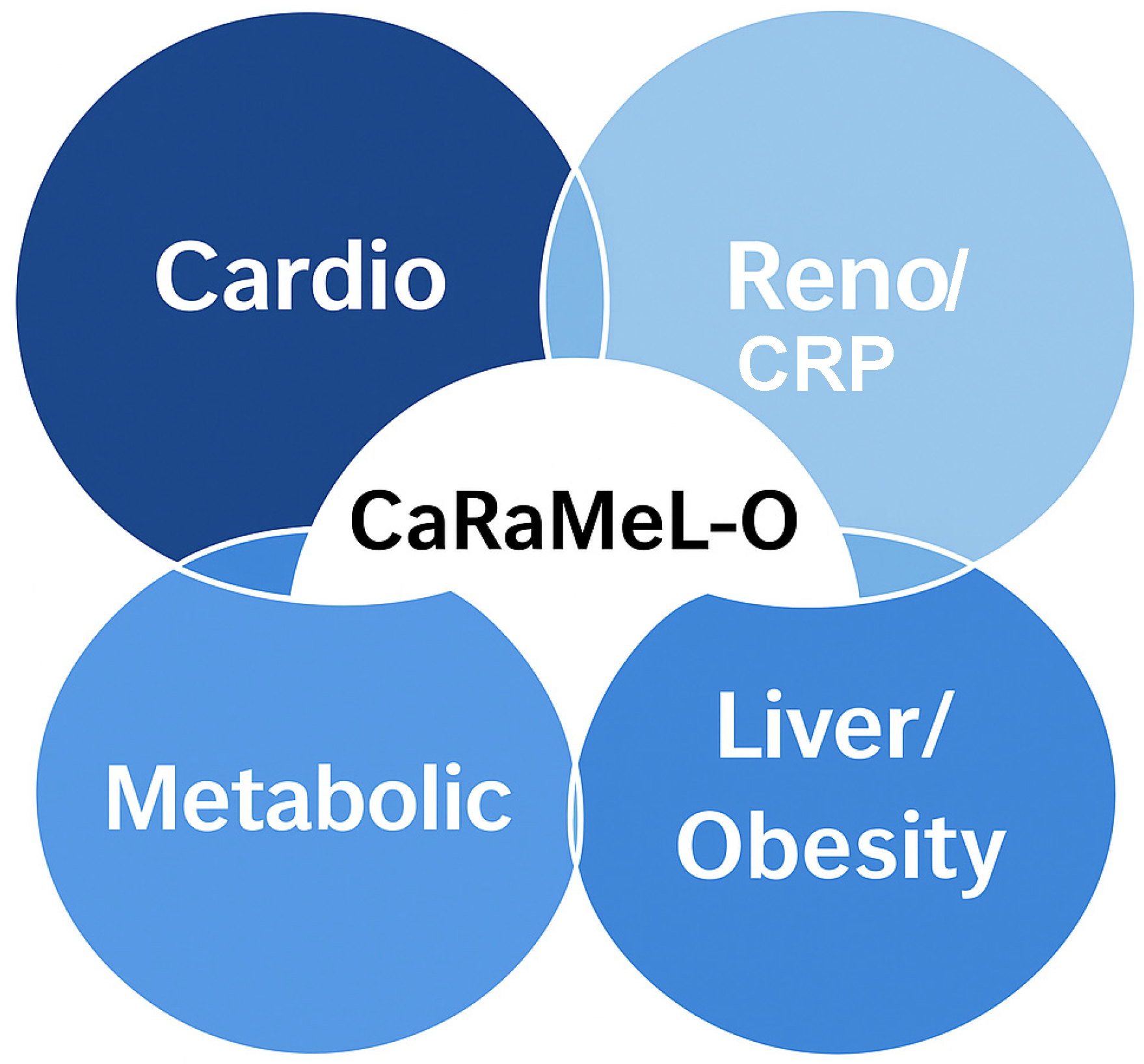 2), and insulin resistance (TyG > 8.7). These thresholds were selected based on widely accepted guideline cut-offs. The area under the ROC curve (AUC) was calculated for each outcome using the continuous CaRaMeL-O score, providing an estimate of its ability to differentiate between low- and high-risk individuals.