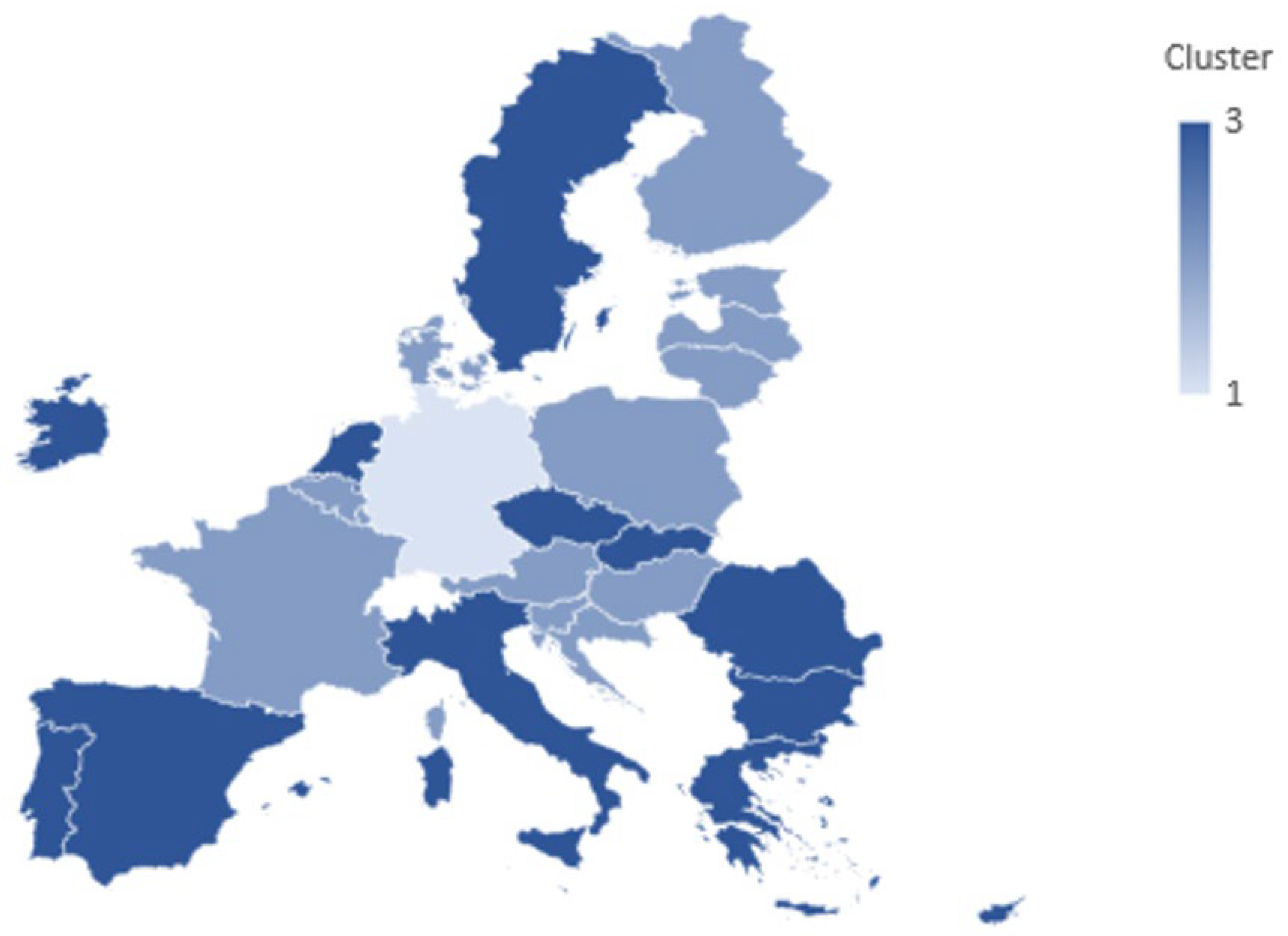 4.1. Classification of European Union Member States According to Psychosocial Risk Patterns Identified with Principal Component Analysis