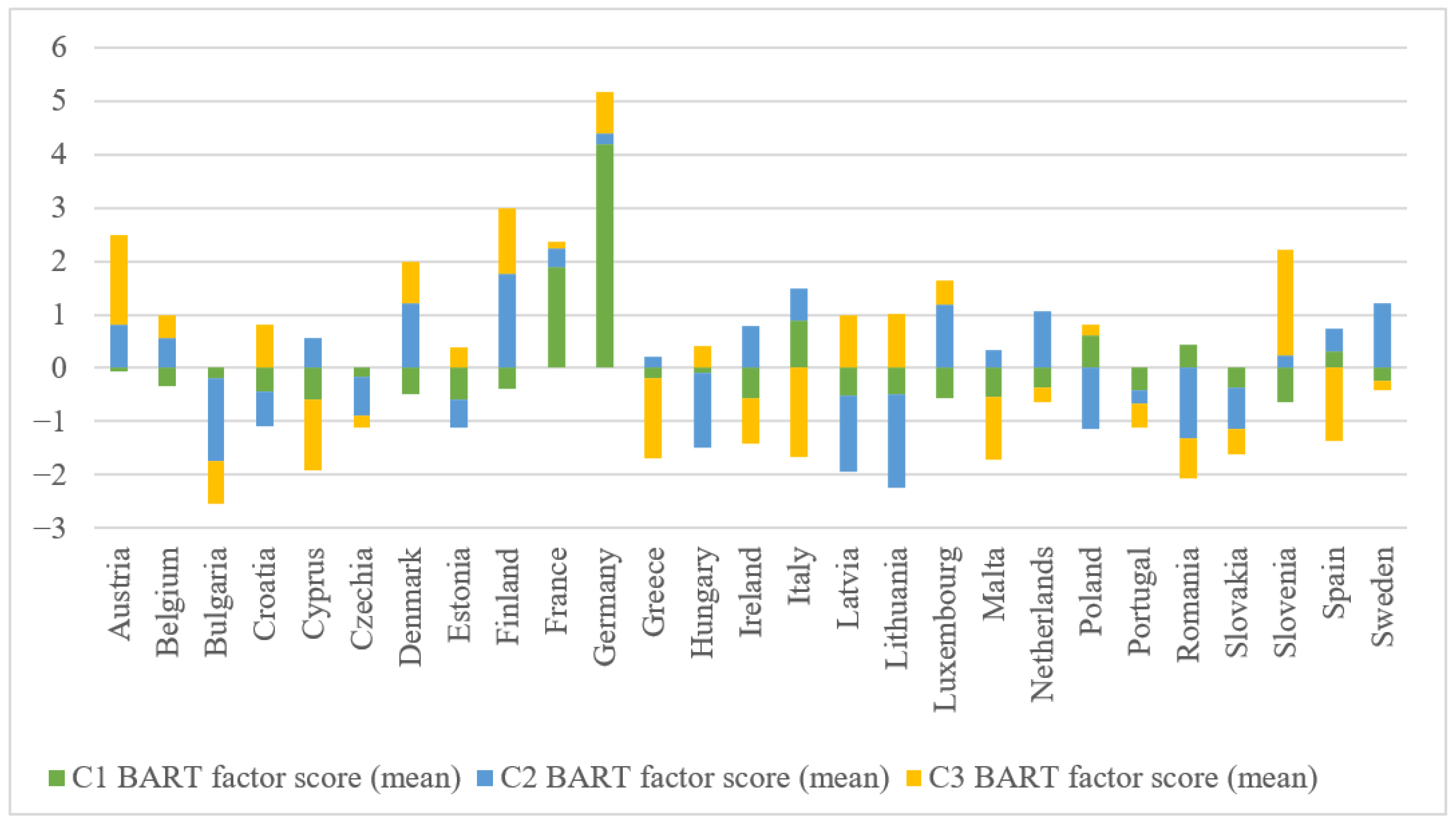 - Calculate standardized factor scores for each Member State and classify countries according to the resulting mental health profiles.