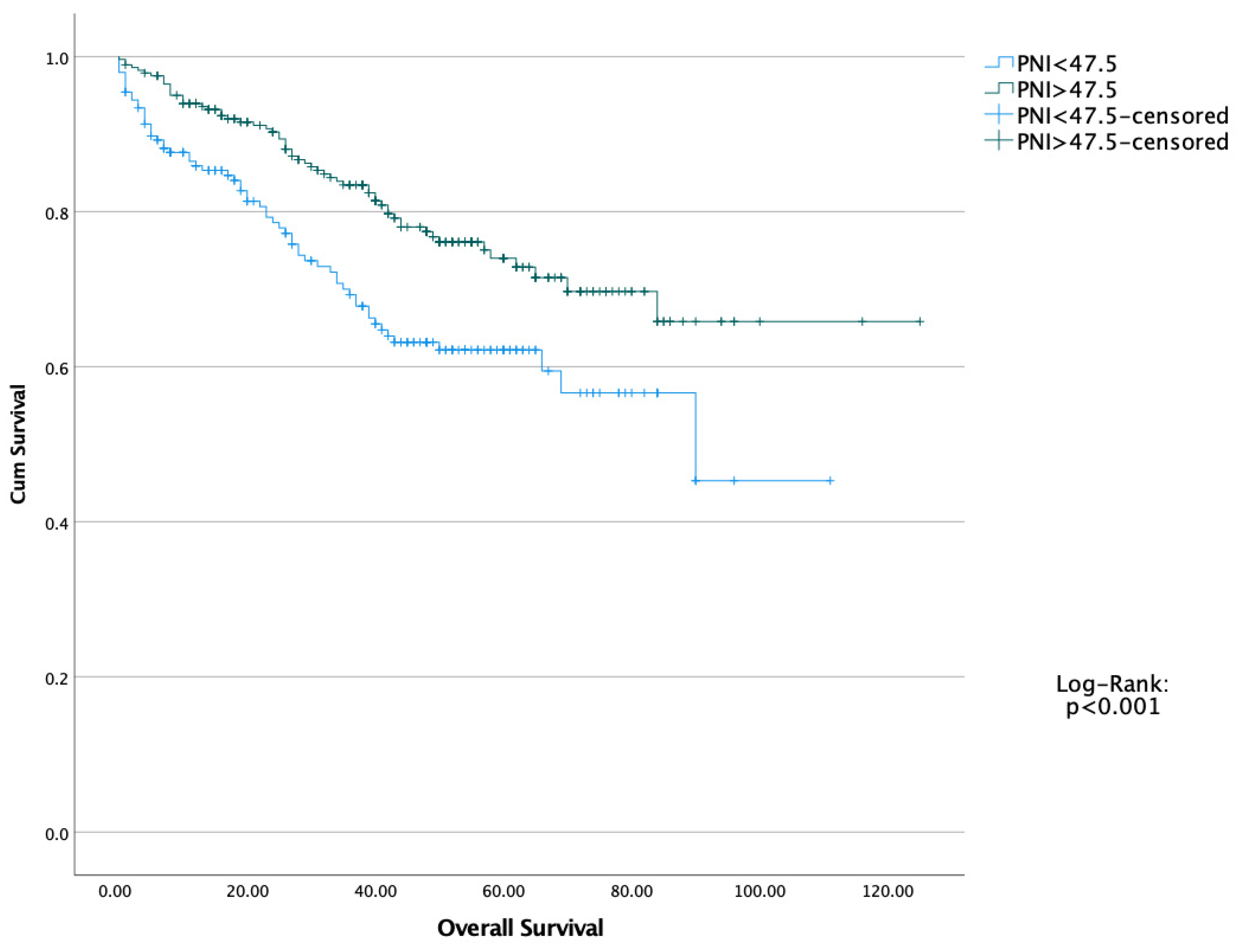 | N: 489 | PNI < 47.5 (N: 201) | PNI > 47.5 (N: 288) | p |