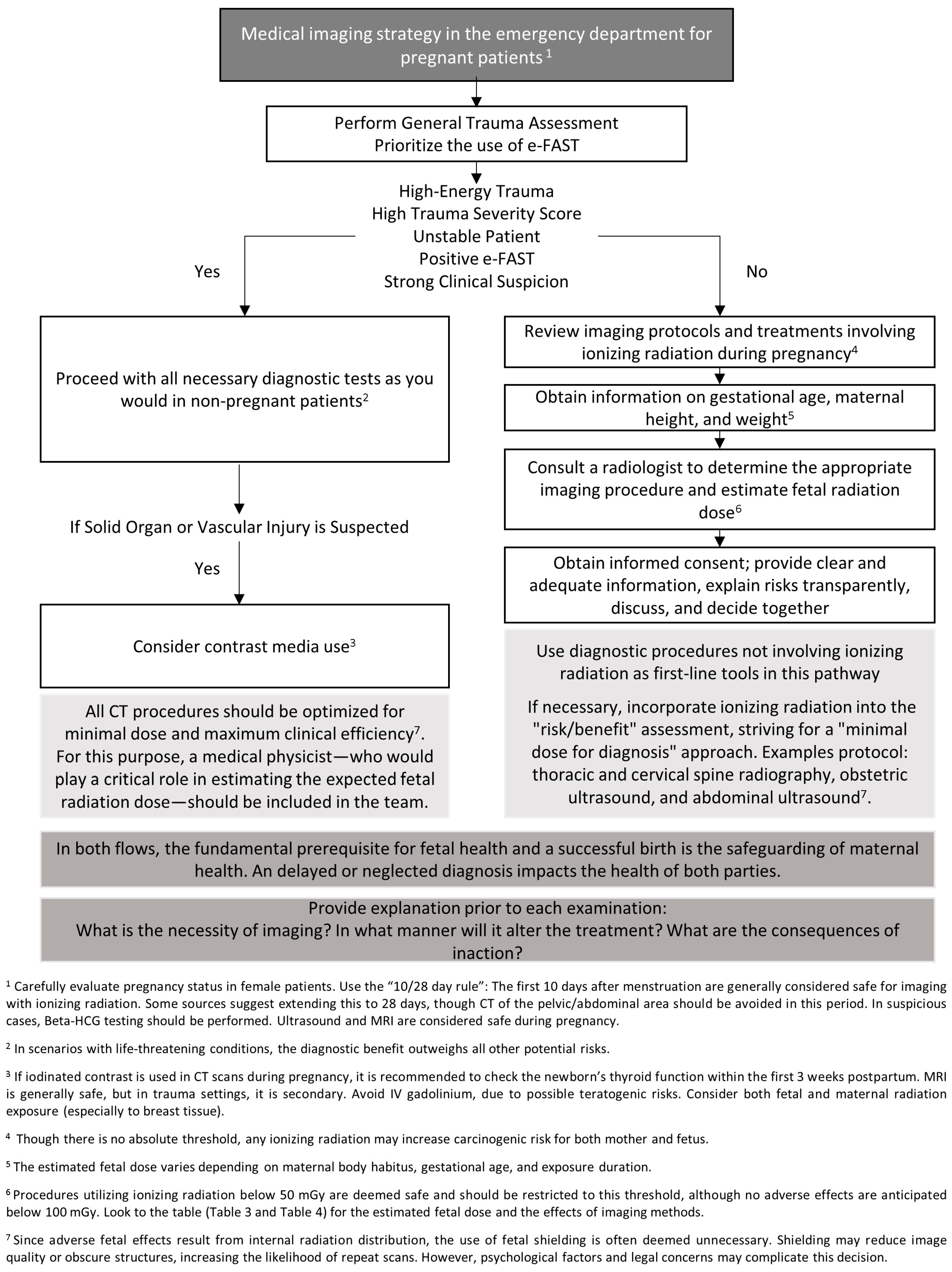 - Qamar, S.R.; Green, C.R.; Ghandehari, H.; Holmes, S.; Hurley, S.; Khumalo, Z.; Mohammed, M.F.; Ziesmann, M.; Jain, V.; Thavanathan, R.; et al. CETARS/CAR Practice Guideline on Imaging the Pregnant Trauma Patient. Can. Assoc. Radiol. J. 2024, 75, 743–750. [Google Scholar] [CrossRef] [PubMed]