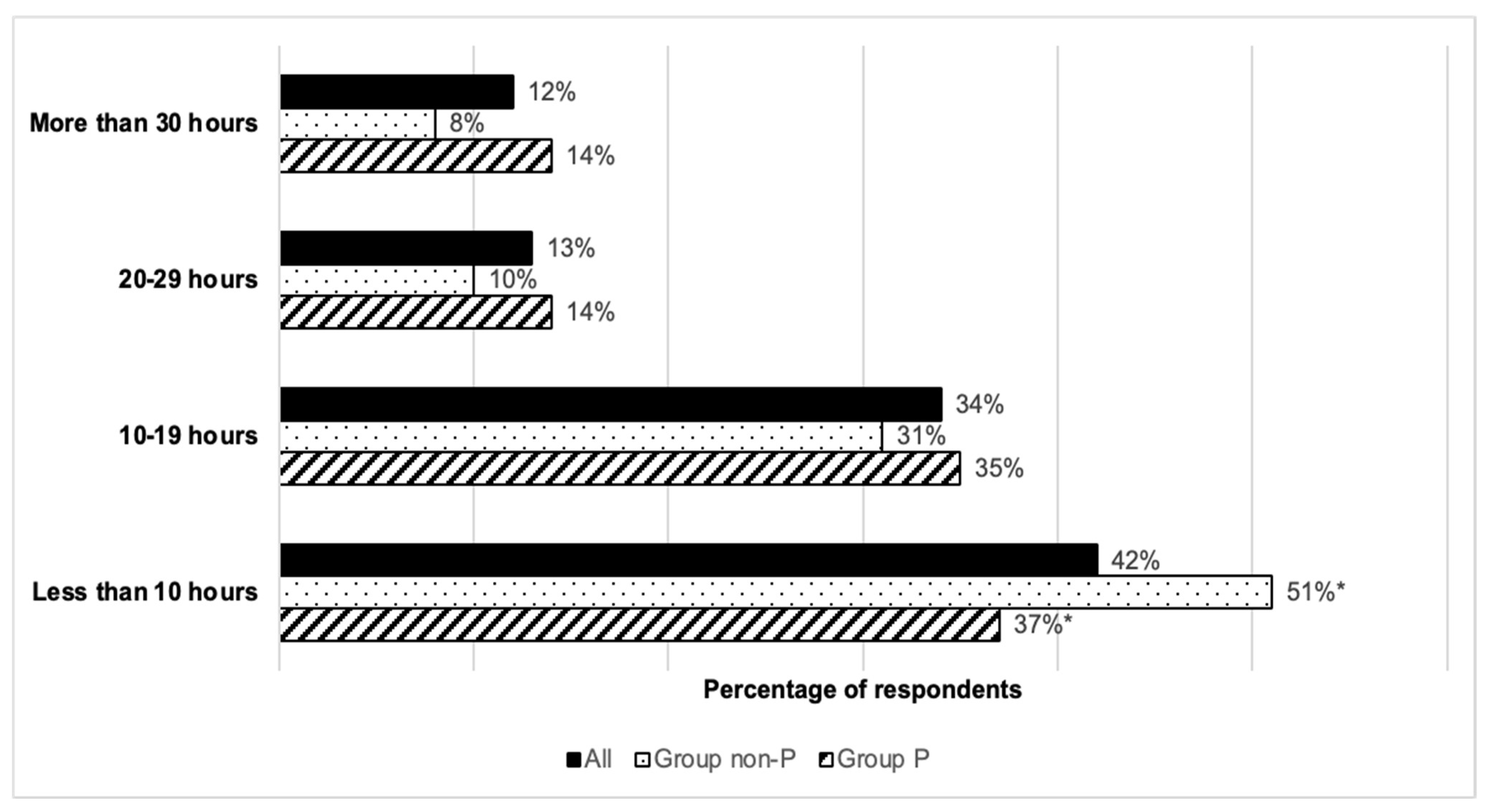In Group non-P, most participants rated their knowledge as poor or very poor, and 81% reported no prior training. This result aligns with previous research indicating that insufficient caregiver knowledge can hinder adherence to dietary recommendations [