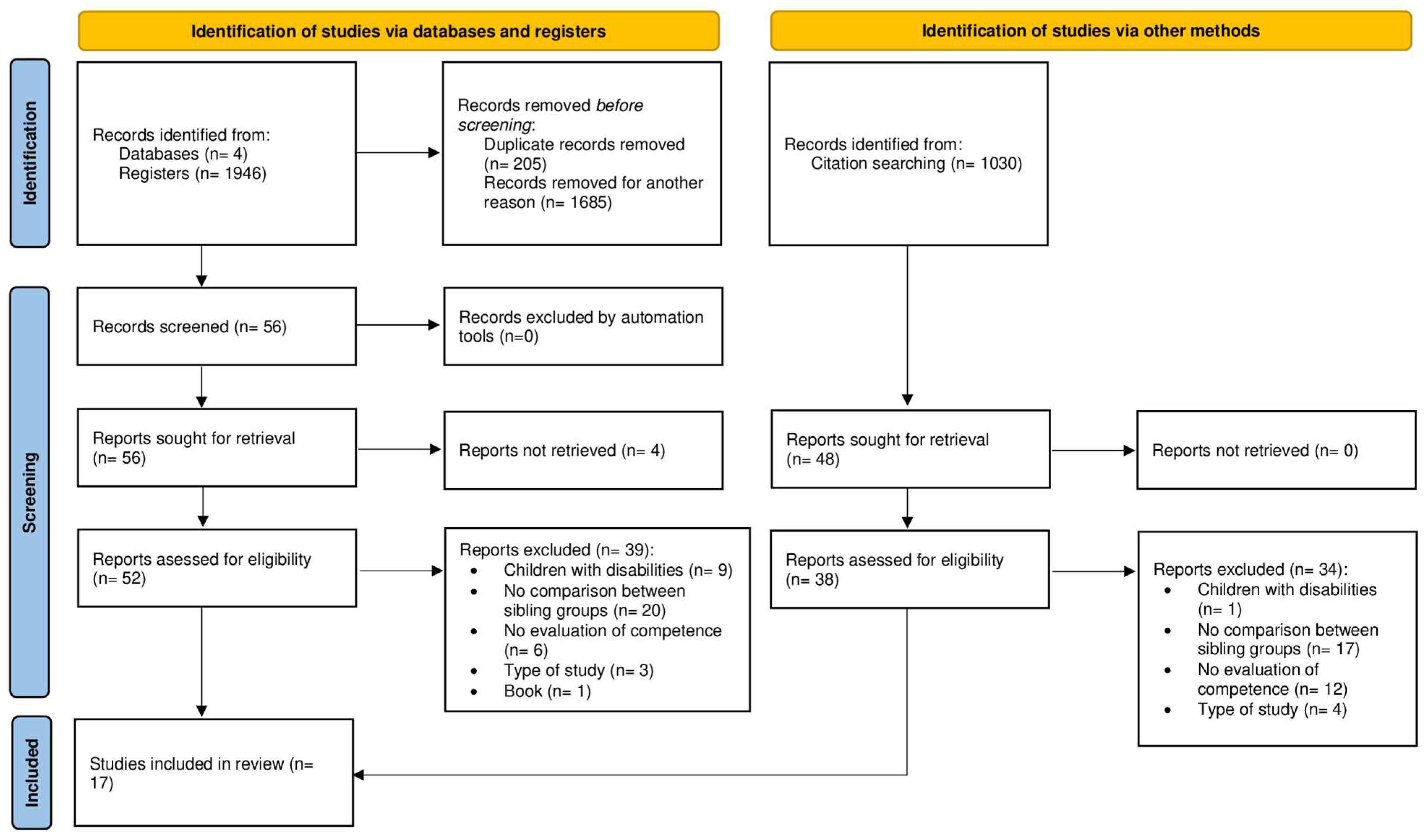 Chicago/Turabian StyleBlanco-Martínez, Nerea, Daniel González-Devesa, Pedro Vicente Vila, Antía Esmerode-Iglesias, and Carlos Ayán-Pérez. 2025. "The Impact of Sibling Presence on Motor Competence and Physical Fitness: A Systematic Review" Healthcare 13, no. 23: 3142. https://doi.org/10.3390/healthcare13233142
