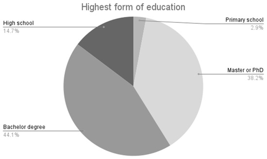 The highest form of education completed by the respondents to the applied questionnaire, 82.3% responded that they had finished university.