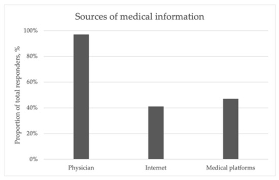 This figure shows the sources of medical education for the patients from the platform. Most of them (97.1%) indicated that their physician (primary care or specialist) was the main source of information.