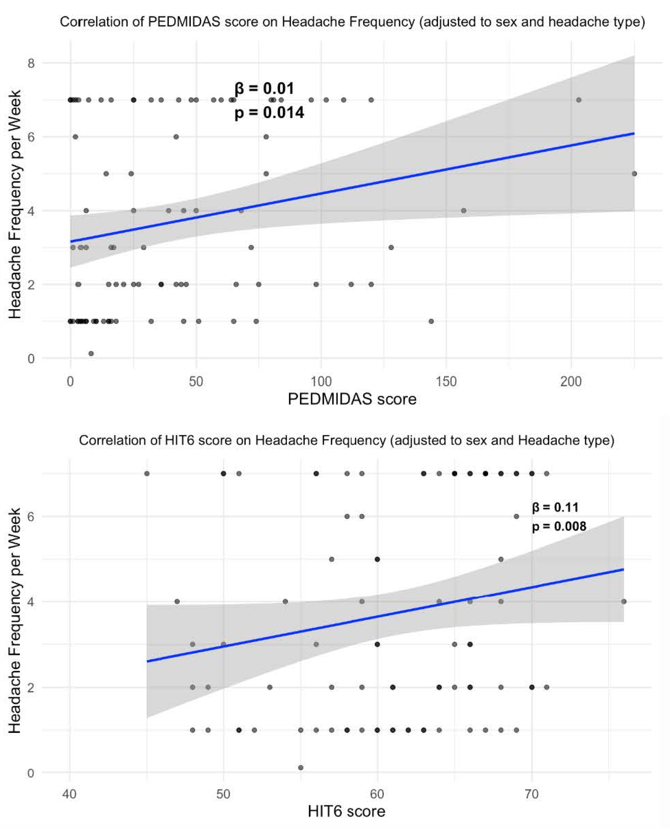 The HIT-6 Questionnaire Corresponds to the PedMIDAS for Assessment of Pediatric Headaches
