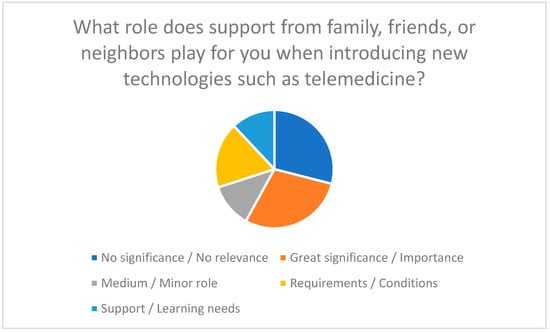 Overall, this study shows that digital support for family caregivers is undergoing a phase of qualitative transformation. The transition from purely functional telemedicine applications to AI-based, interactive systems marks a paradigm shift: from technical networking to communicative cooperation. The study thus makes an innovative contribution to the further development of digital care models in the home context and at the same time provides practice-relevant insights for the design of sustainable care support [13,23,26,31,32,33,34,35,48]. However, it is important to emphasize that the results are exploratory and descriptive and should serve as a basis for further research.
