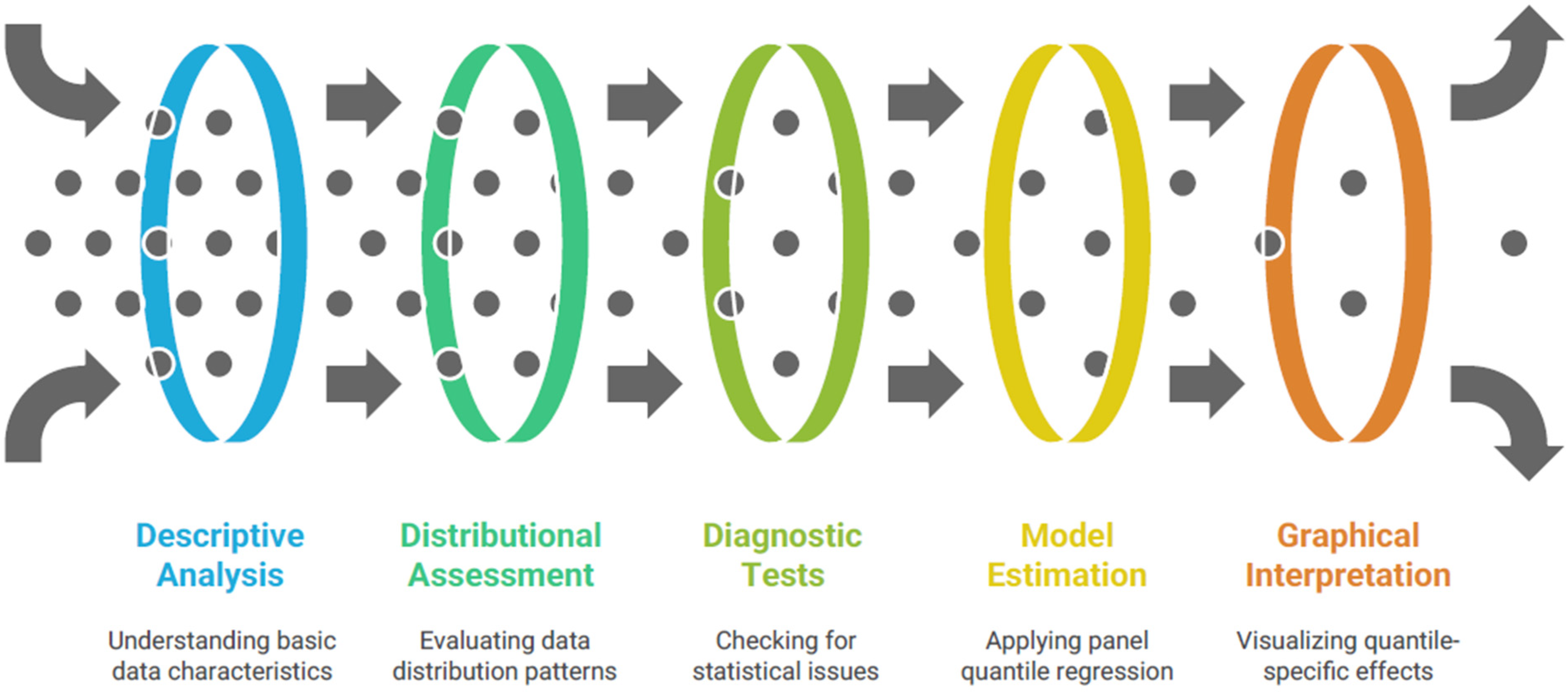 The empirical strategy employed in this study combines descriptive statistical analysis, diagnostic testing, and advanced panel econometric techniques to assess the relationship between innovation capacity and healthcare performance across the 27 EU Member States during 2011–2024. The analysis proceeds through five main stages as presented in Figure 2. This methodological framework ensures robustness, distributional flexibility, and an accurate depiction of heterogeneous relationships between innovation and healthcare outcomes.