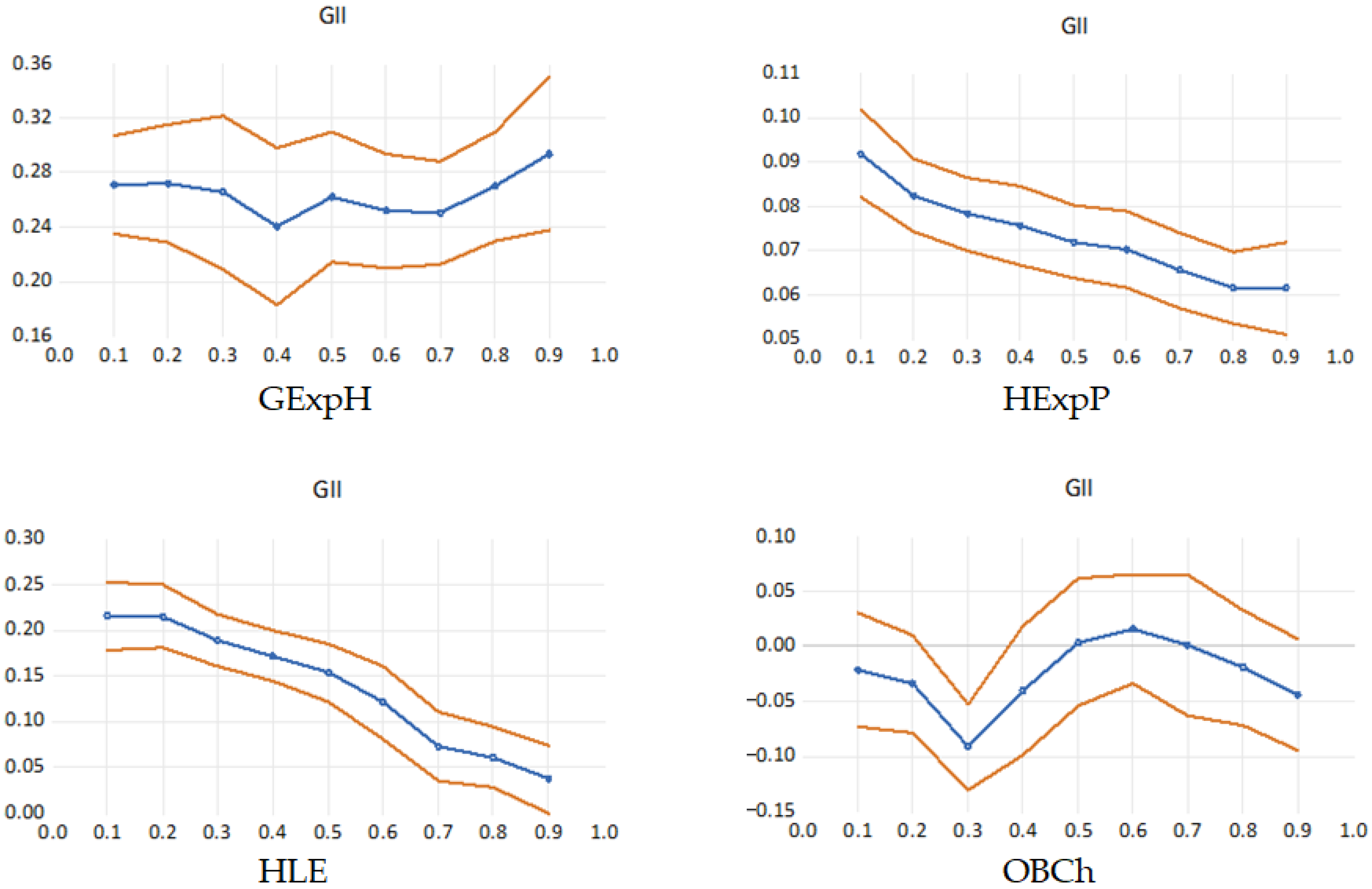 Figure 4. Quantile process of the GII effects on healthcare indicators.