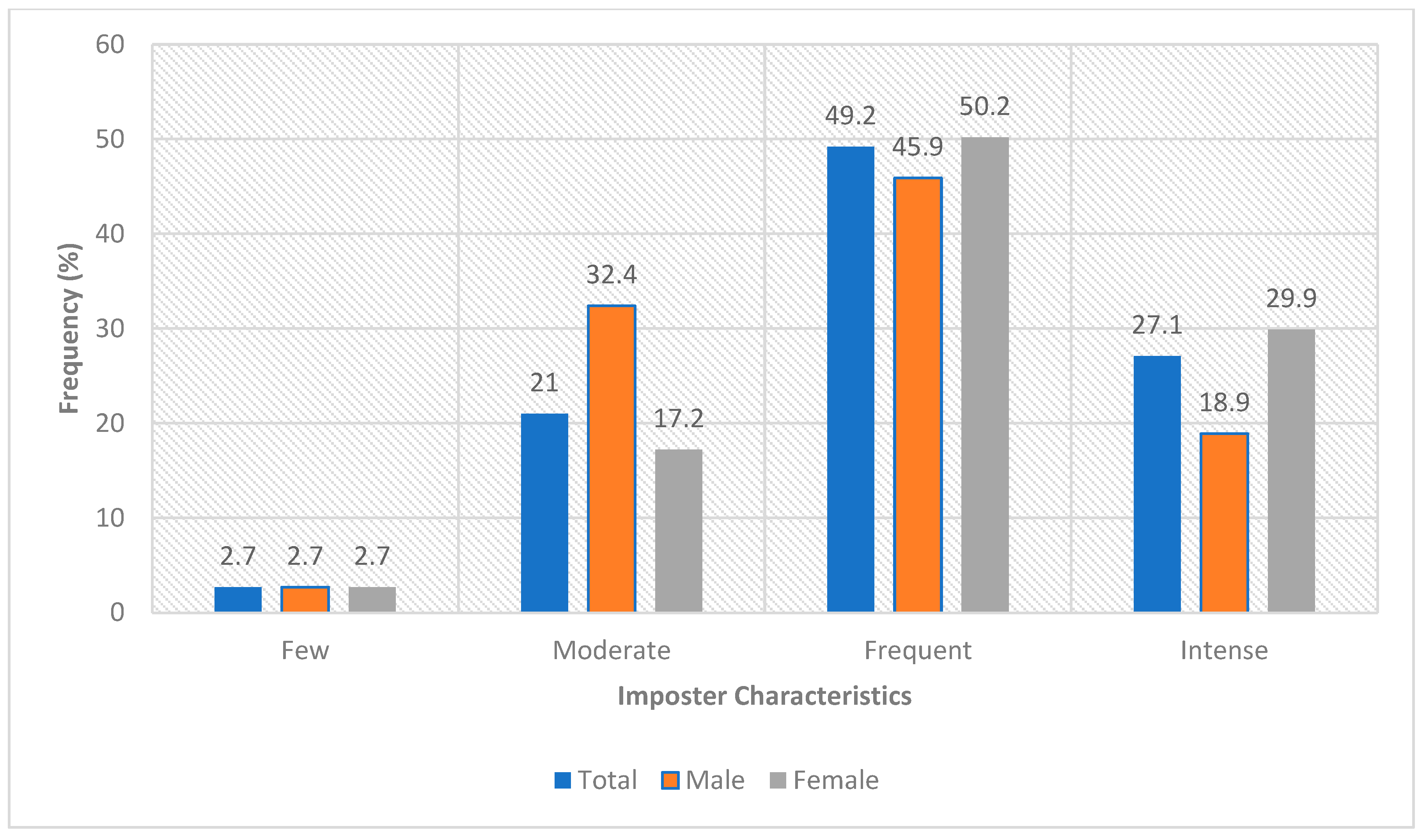 - A high prevalence of Imposter Phenomenon (IP) was found among medical students, with nearly half (49.2%) reporting frequent IP characteristics.