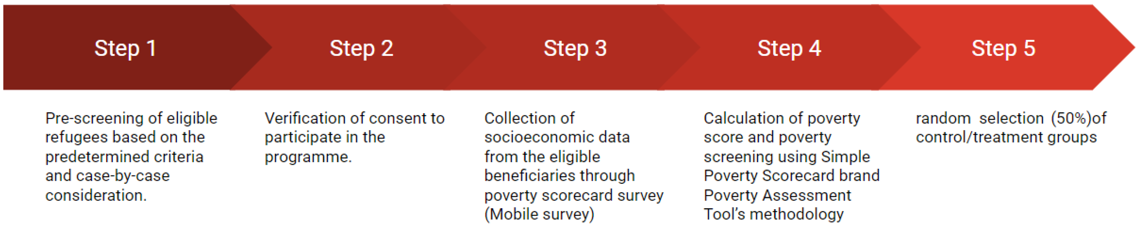 - Tanner, J.; Mugera, H.; Tabasso, D.; Lazić, M.; Gillsäter, B. Answering the Call: Forcibly Displaced During the Pandemic; Joint Data Center on Forced Displacement: Copenhagen, Denmark, 2021. [Google Scholar]