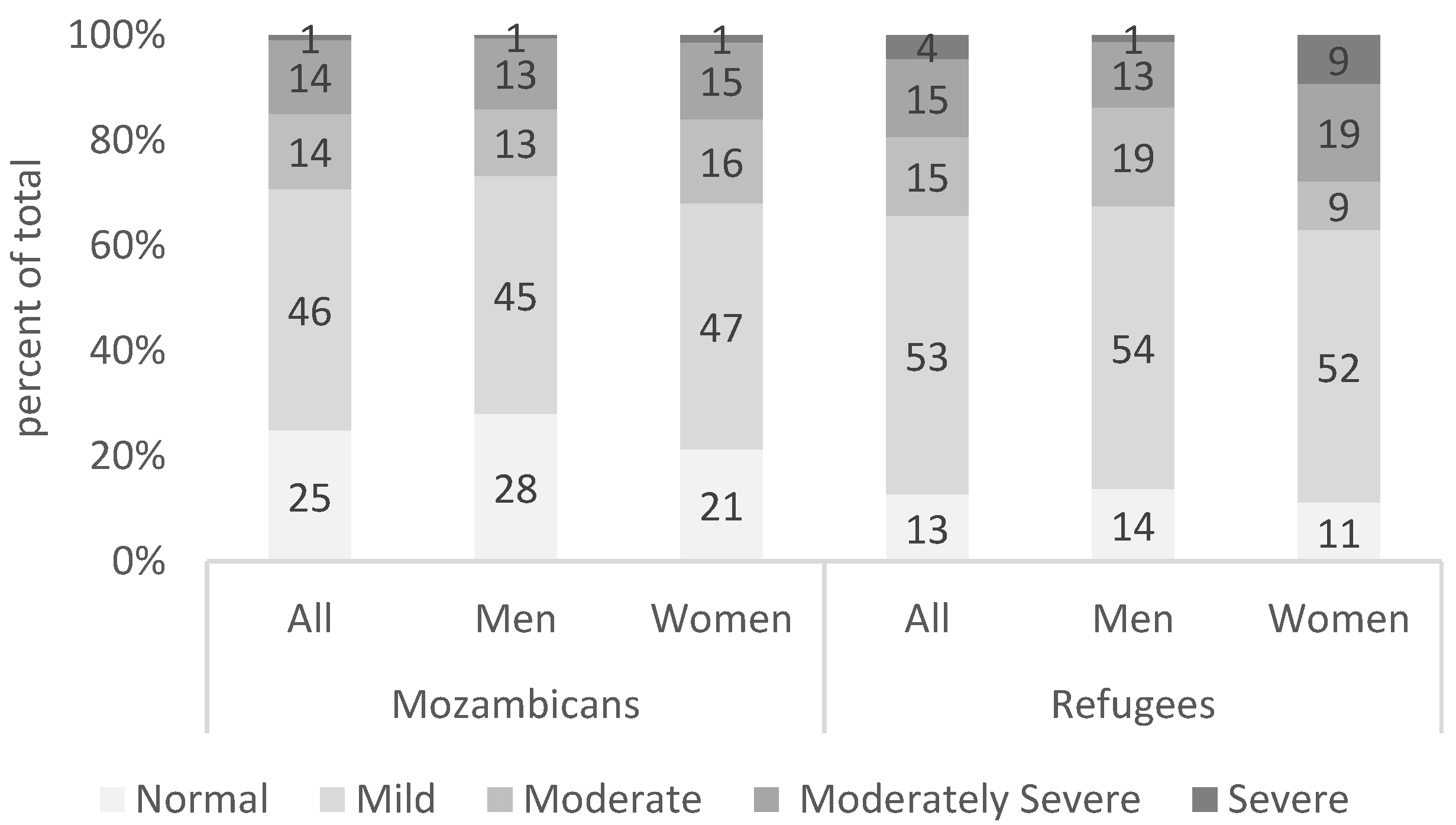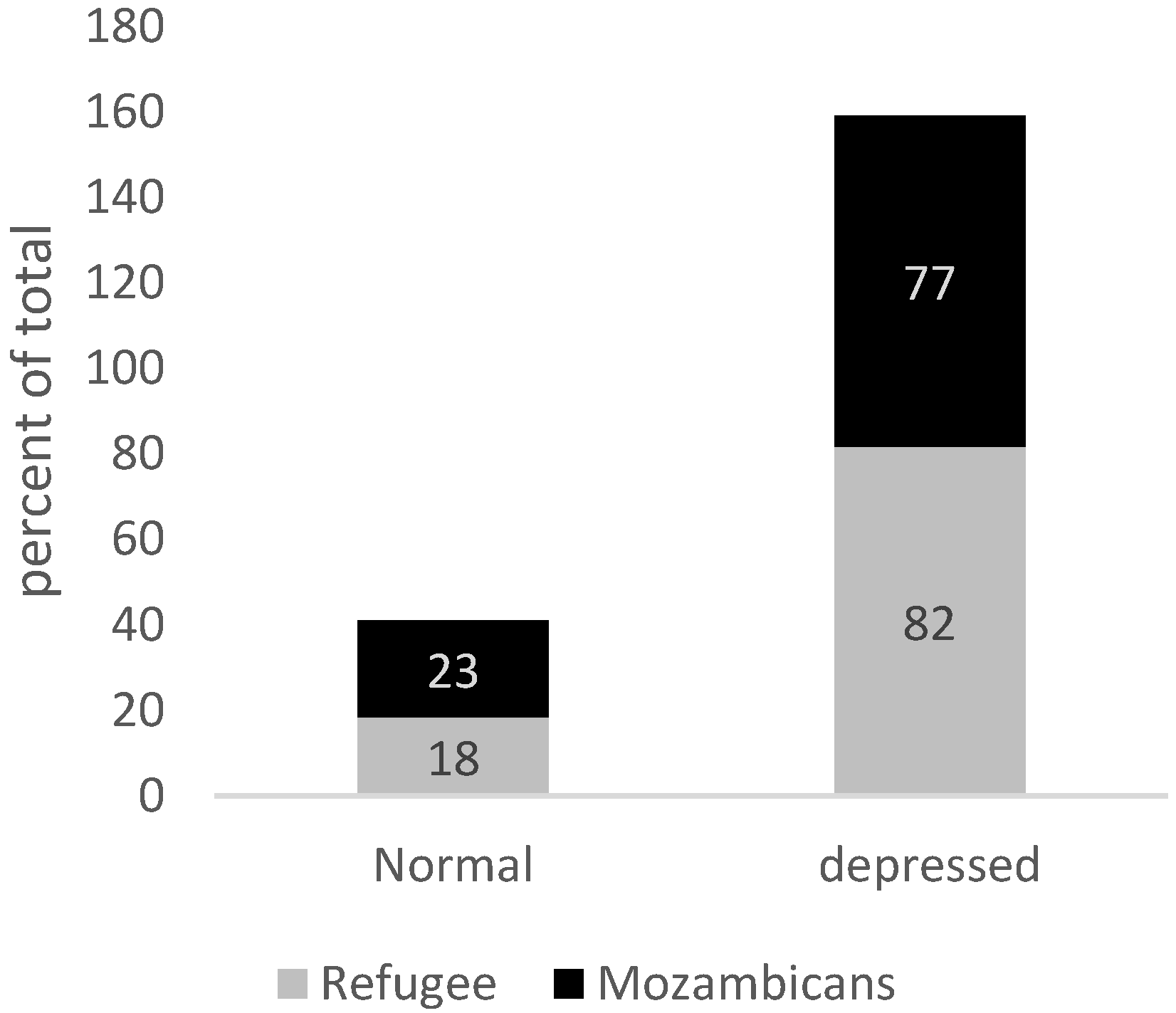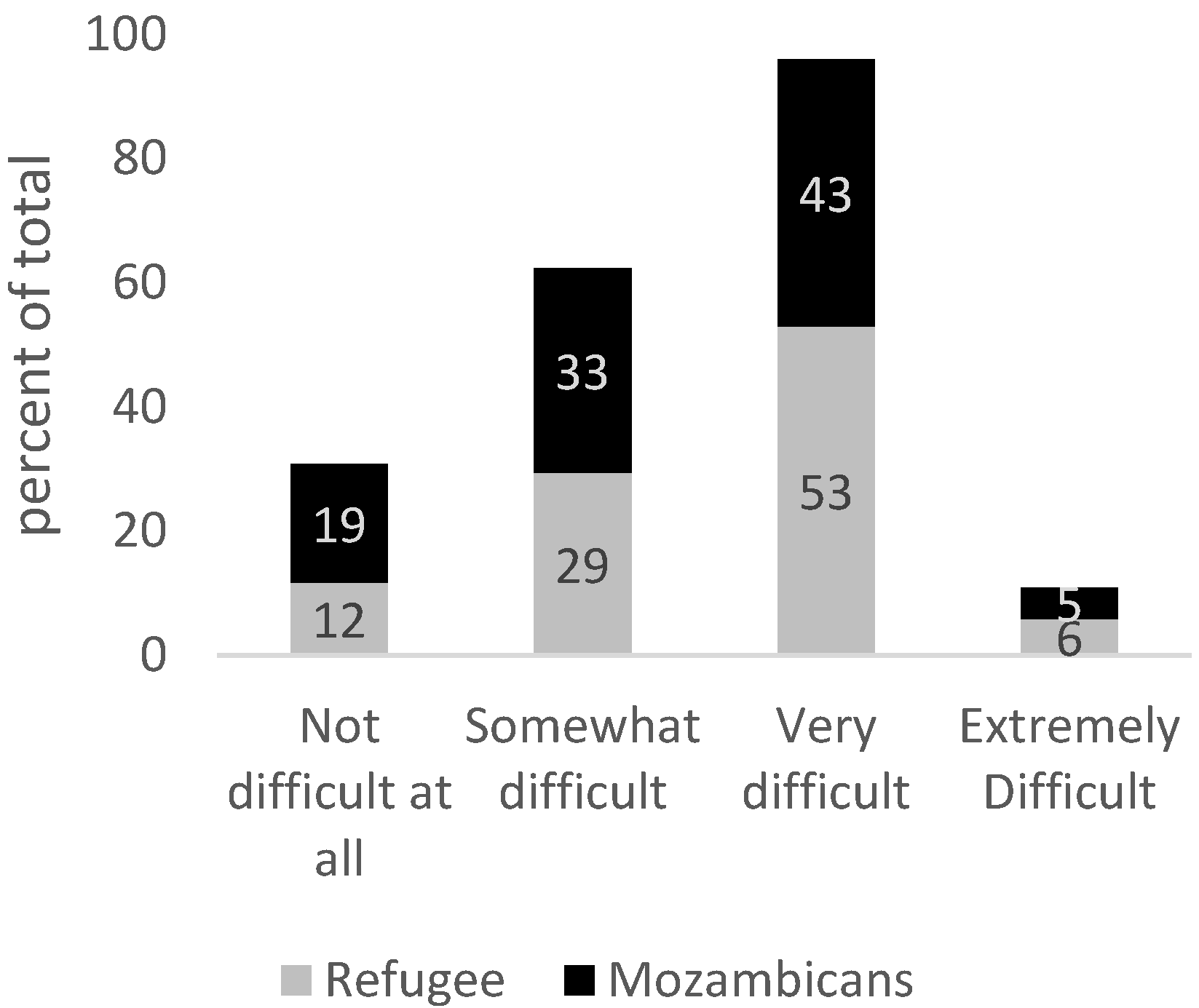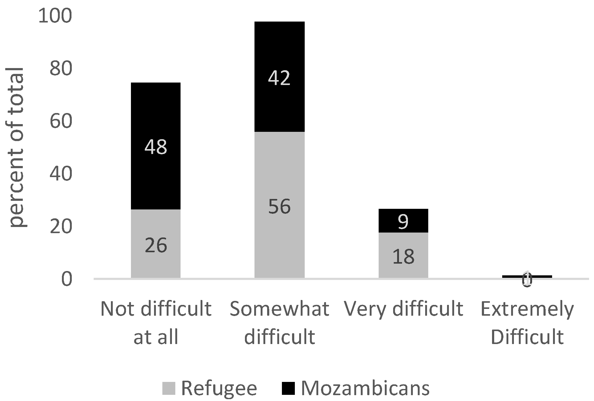 | Pooled Sample | Refugees | Mozambicans | Pooled Sample | Refugees | Mozambicans | |