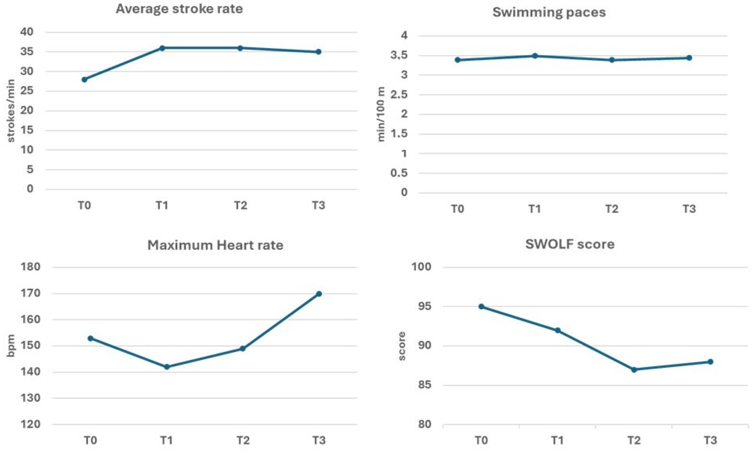 | T0 | Baseline: swimming skills assessment, and establishment of individualized training goals | |