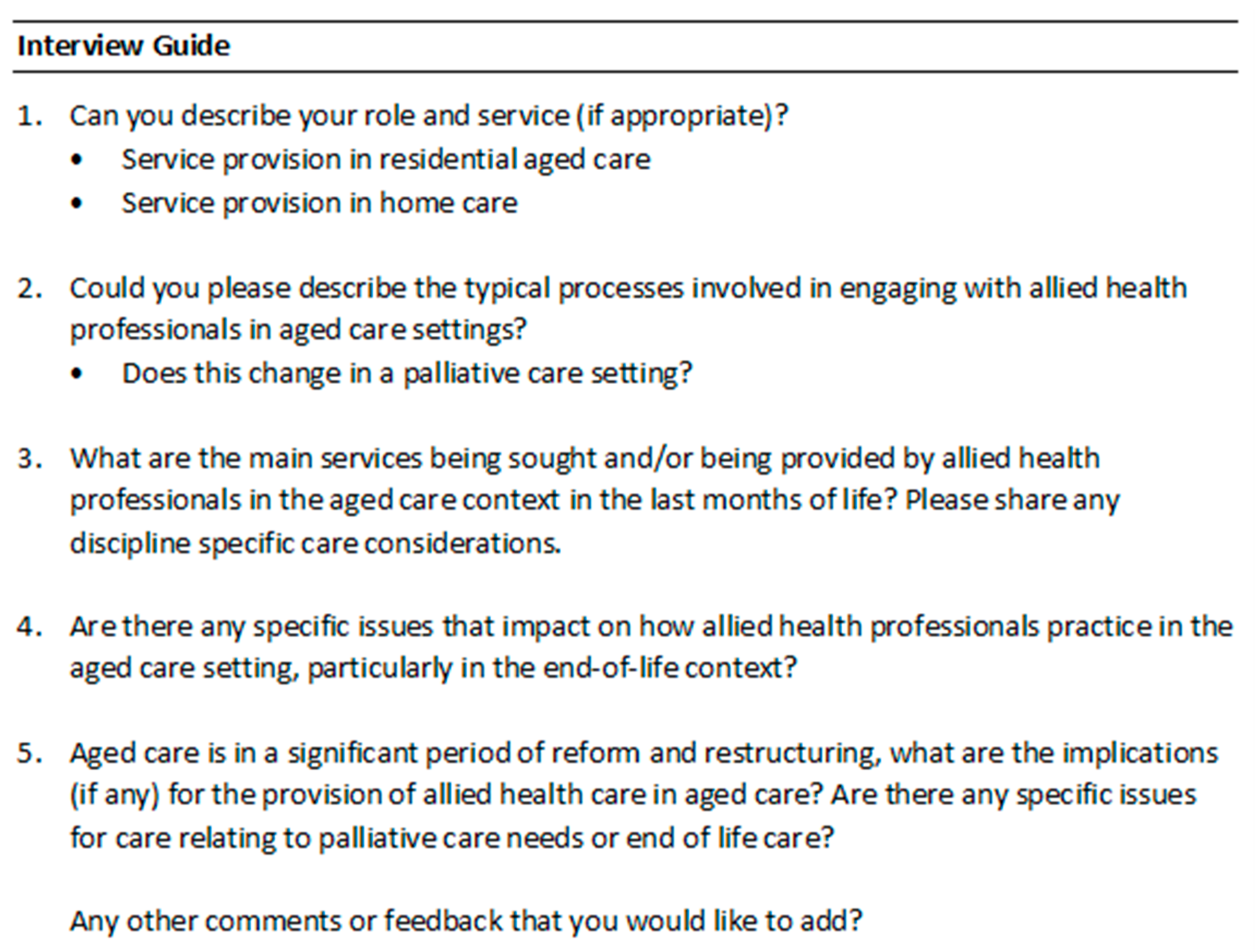 Exploring the Implications of Aged Care Reform on Allied Health Workforce and Capacity to Deliver Palliative and End-of-Life Care