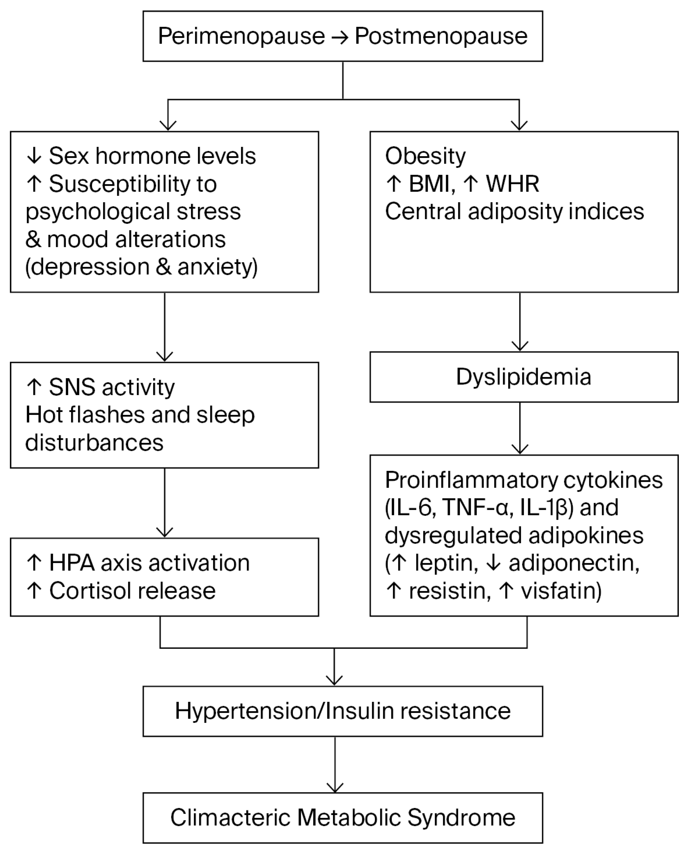 - Psychological stress plays a relevant role in the development of metabolic syndrome, highlighting the need for integrated psychobiological evaluation during the climacteric period.
