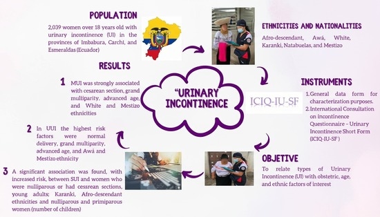 Torres, C.S.; Esparza, K.G.; Celi, V.A. Urinary Incontinence and Its Relationship with Obstetric, Age, and Ethnic Factors: A Cross-Sectional Study. Healthcare 2025, 13, 3254. https://doi.org/10.3390/healthcare13243254