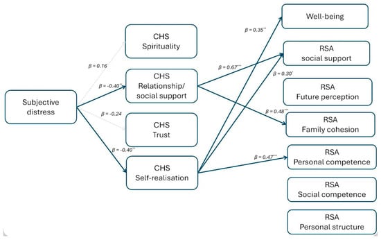 | Subjective distress–trust–social competence | 0.24 | 0.30; 2.87 | 0.010 |